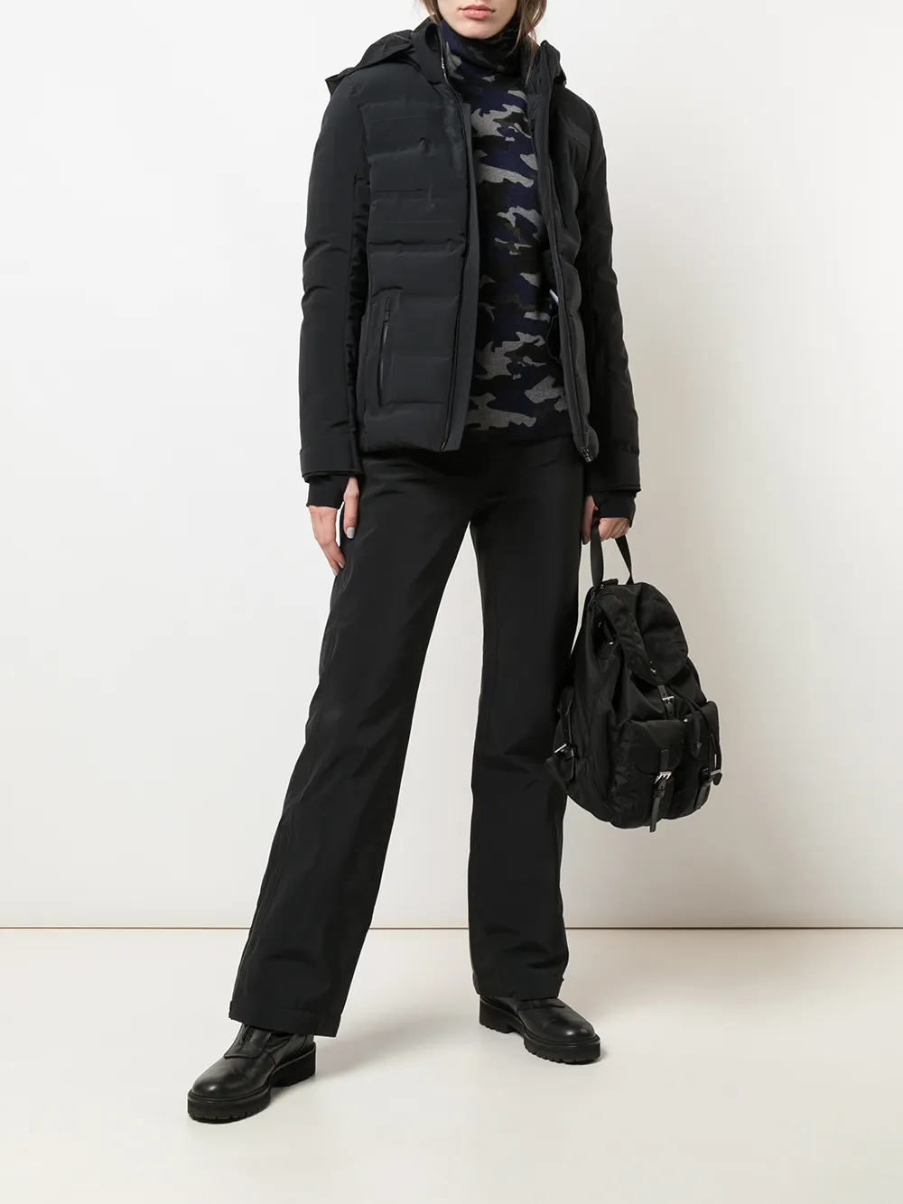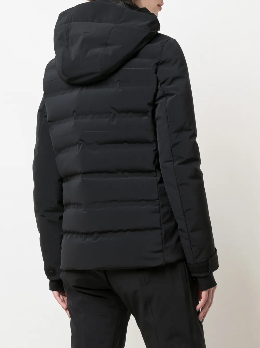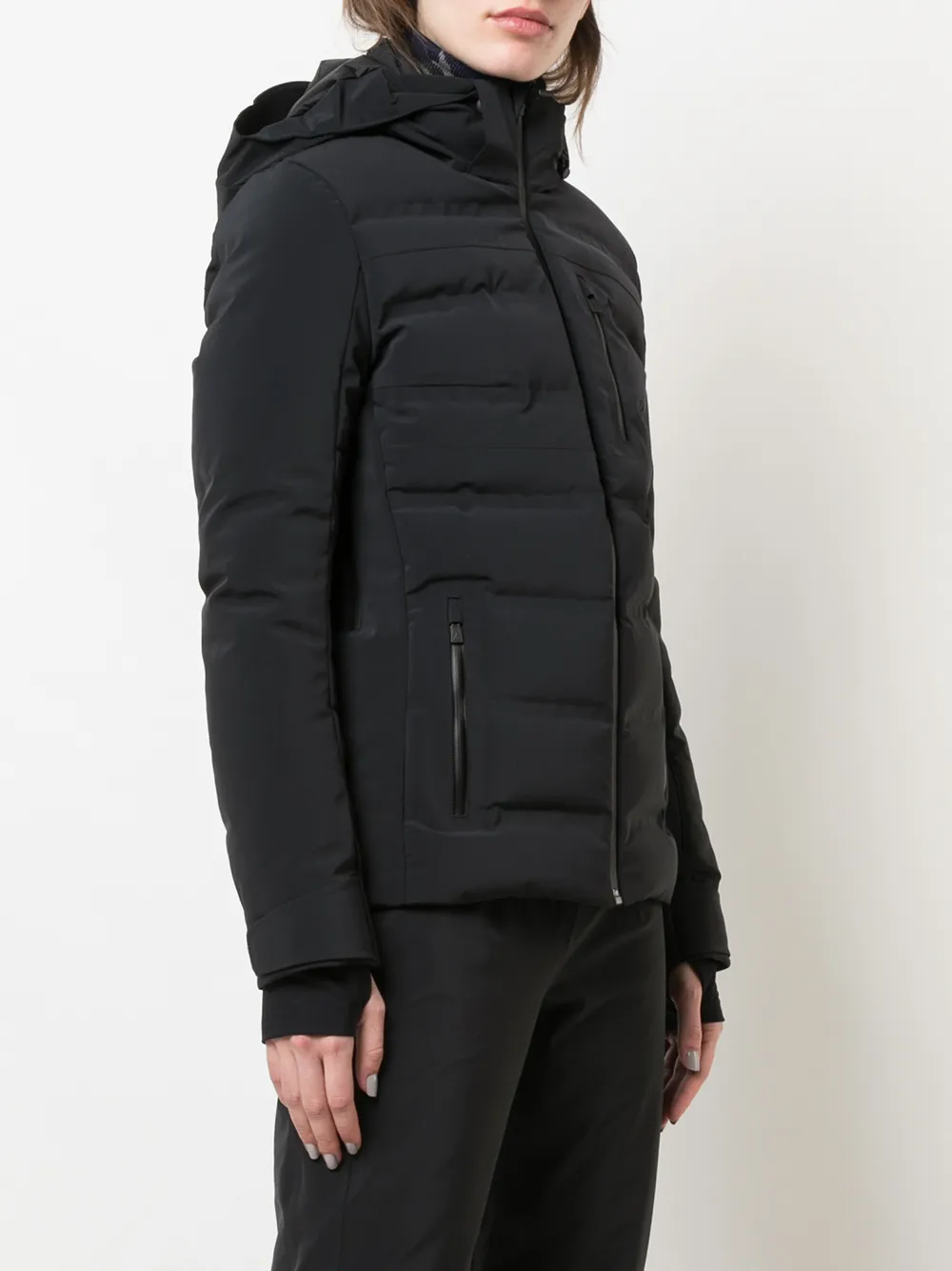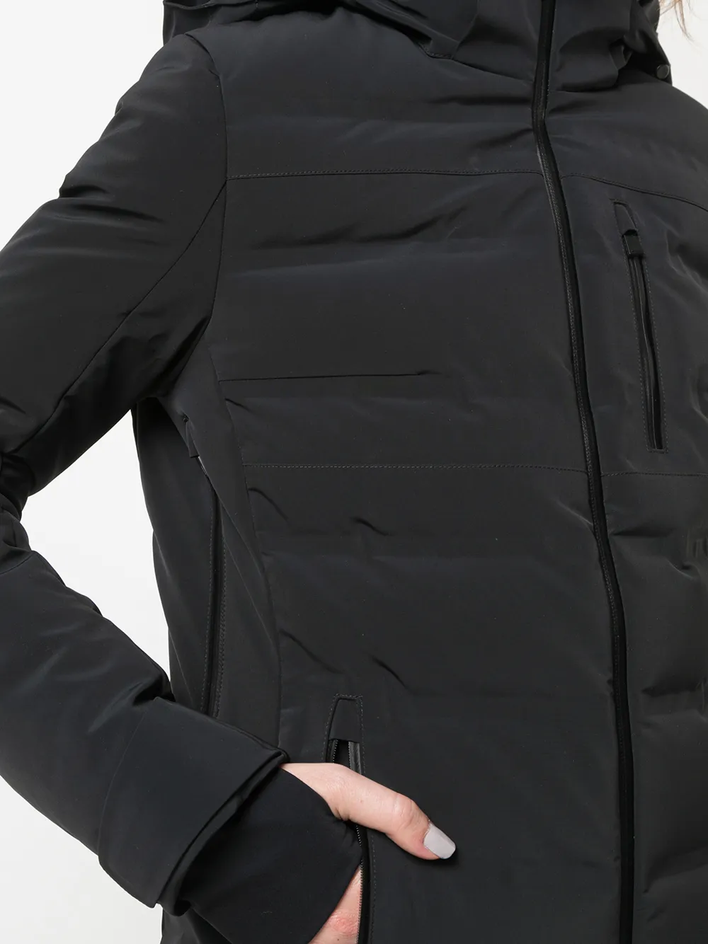 Капюшон, застежка на молнии спереди, боковые карманы на молнии, длинные рукава и узкий крой. Цвет: черный.