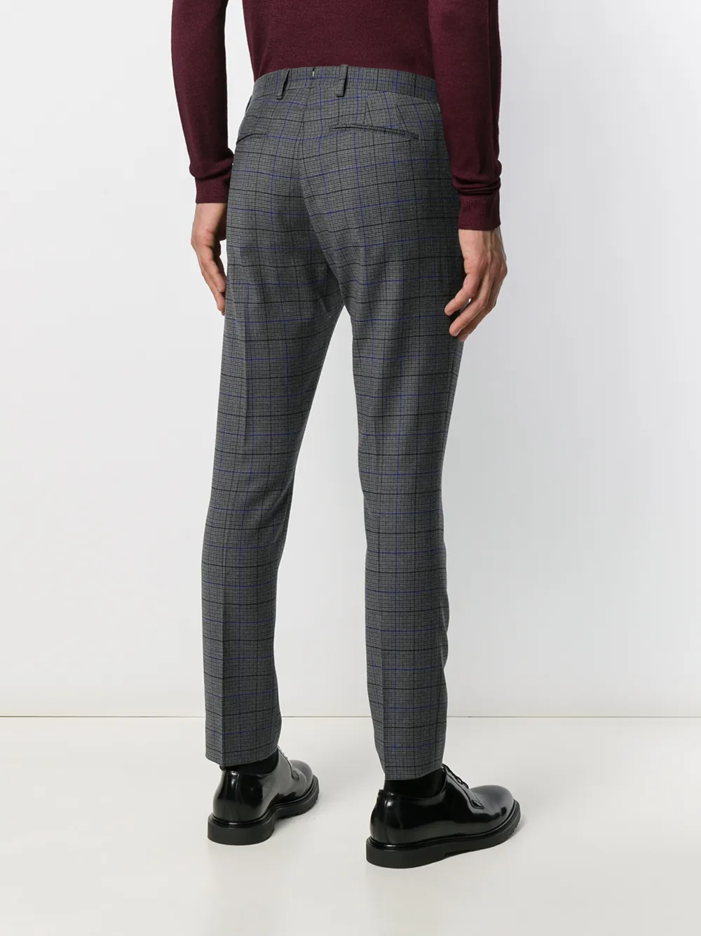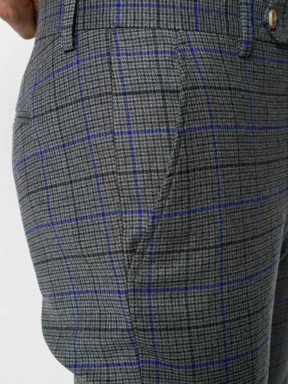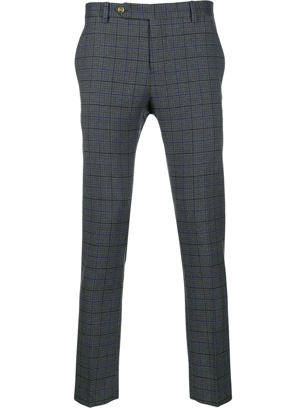 Клетчатые брюки кроя слим от Entre Amis. Ширинка на крючке и молнии, смещенная застежка на пуговицах спереди, боковые карманы, узор в клетку, задние карманы с листочкой и узкий крой.
