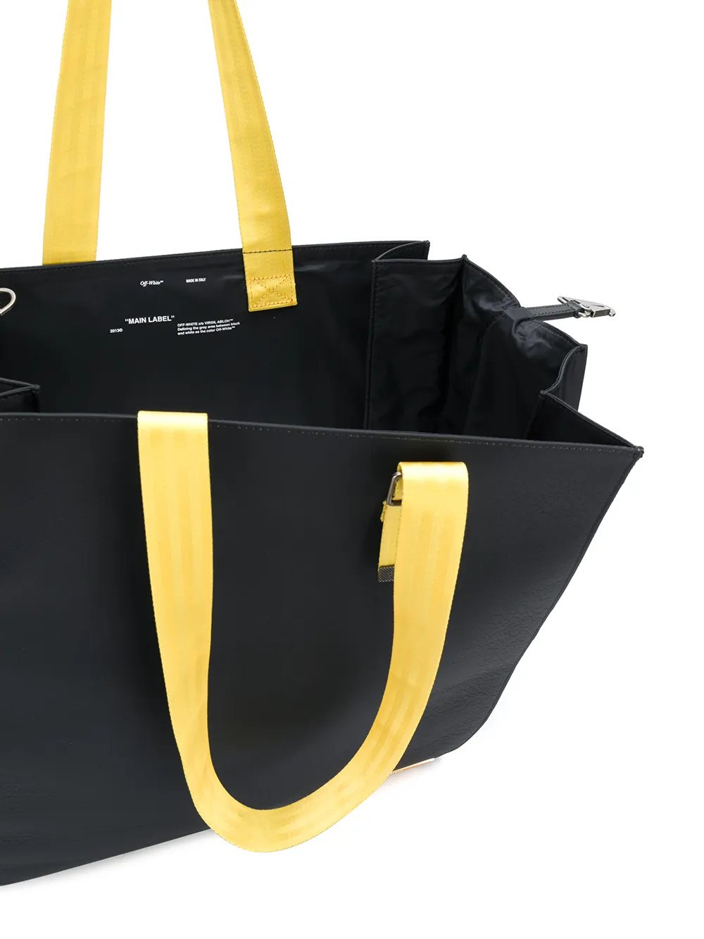 Сумка-тоут с контрастными ручками от Off-White. Закругленные ручки, дизайн с открытым верхом, застежка на крючок, заплатка с логотипом спереди и внутреннее клеймо с логотипом. Цвет: черный.