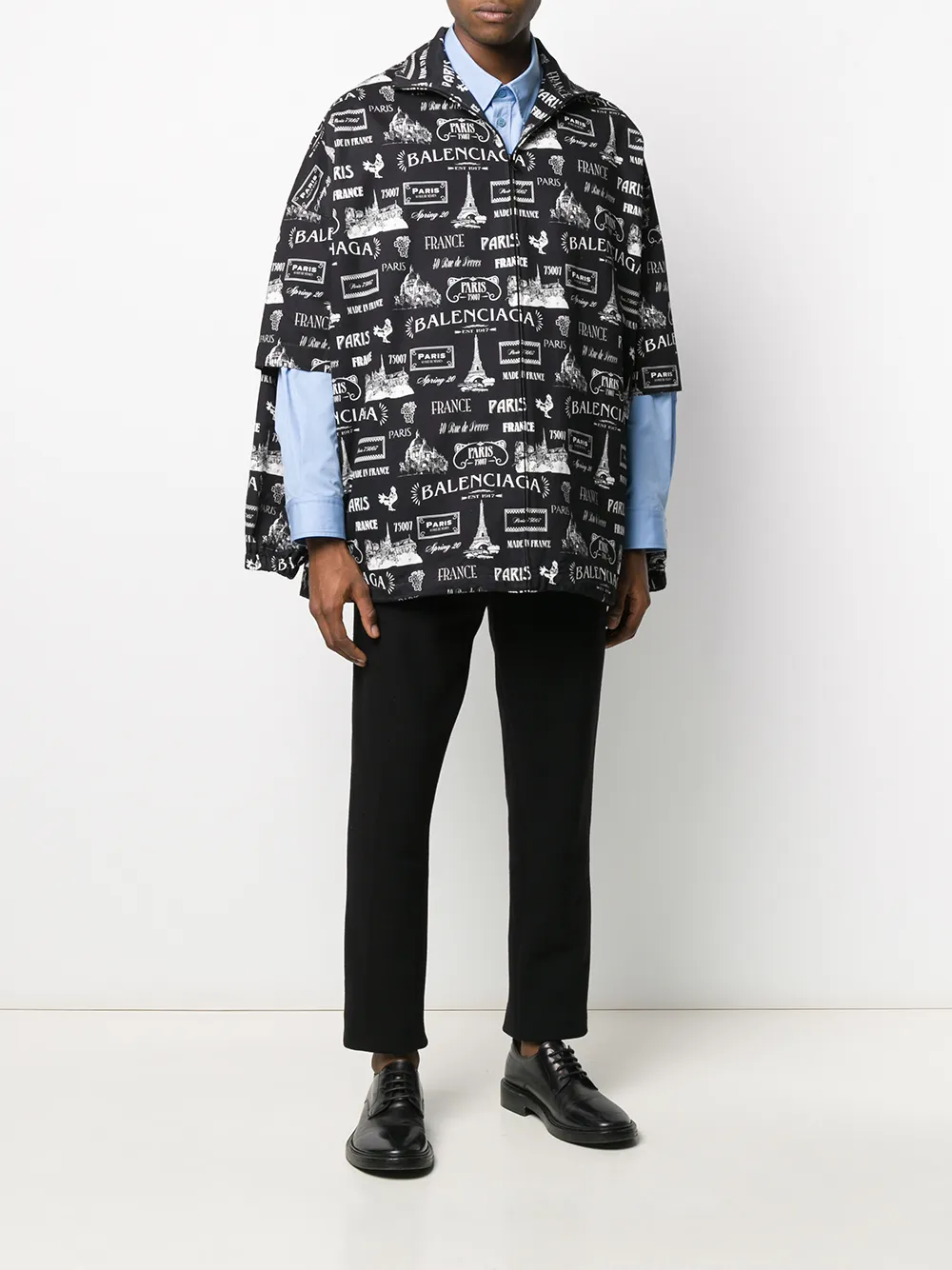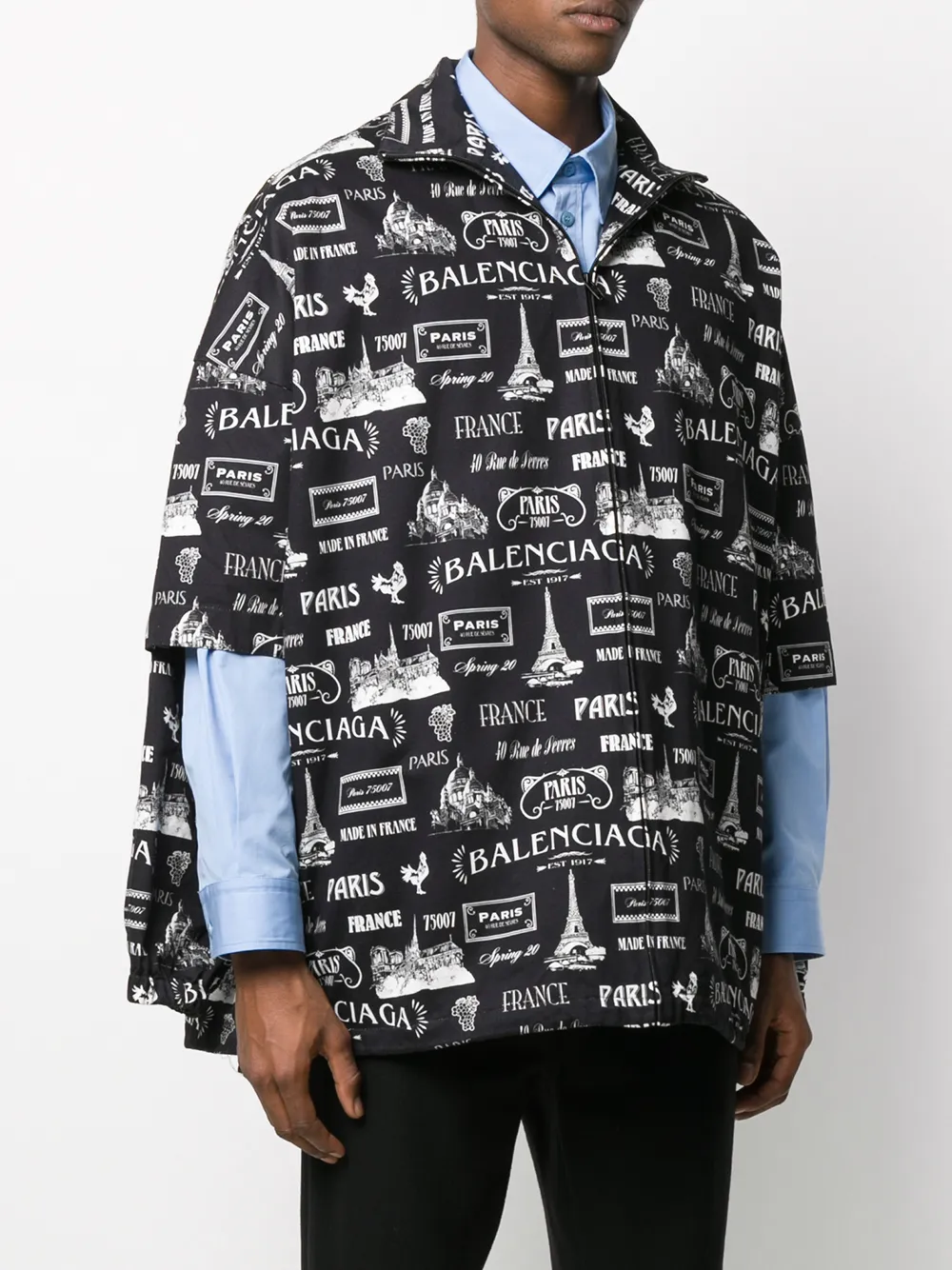 Подробнее о товаре: В коллекции весна-лето 2020 Balenciaga возвращается к своим истокам, что доказывает хлопковая куртка Paris с двойными рукавами. В ее дизайне прослеживаются отсылки к Франции и столице мод: куртку украшают логотипы и изображения Эйфелевой башни. Двойные рукава позволяют самостоятельно выбирать подходящую длину в зависимости от погоды и настроения. Модель черного и белого цвета имеет воротник-стойку, застежку на молнии спереди, короткие рукава, длинные рукава, боковые карманы и эластичный подол.
