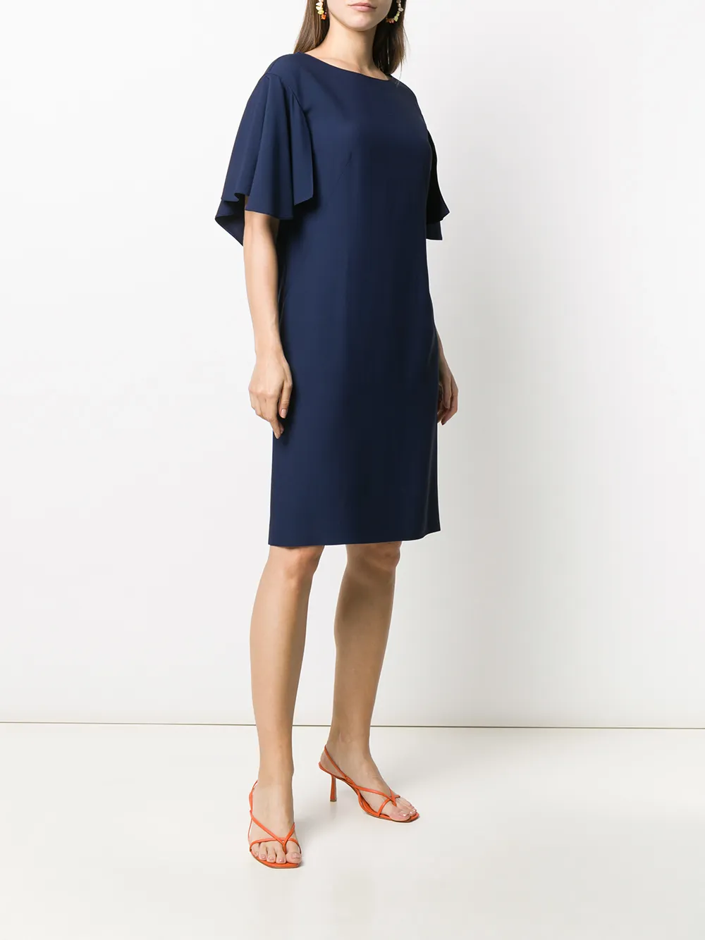 Платье-трапеция с оборками на рукавах Alberta Ferretti, синий