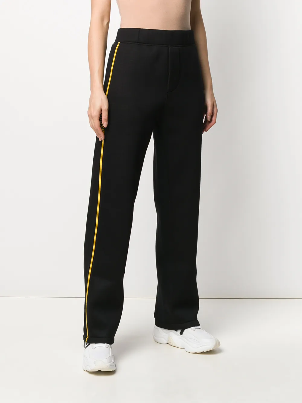 Спортивные брюки с контрастным логотипом от Dsquared2 (Дискуэд). Эластичный пояс, прямые брючины и стандартная длина. Цвет: черный.