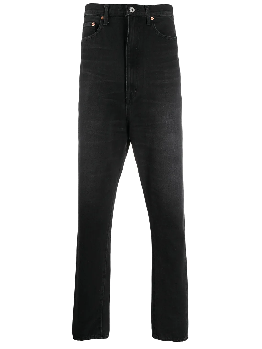 Брюки с завышенной талией от Doublet. Ширинка на молнии с пуговицей, пояс с петлями для ремня, классическая пятикарманная модель и стандартная длина. Цвет: черный.