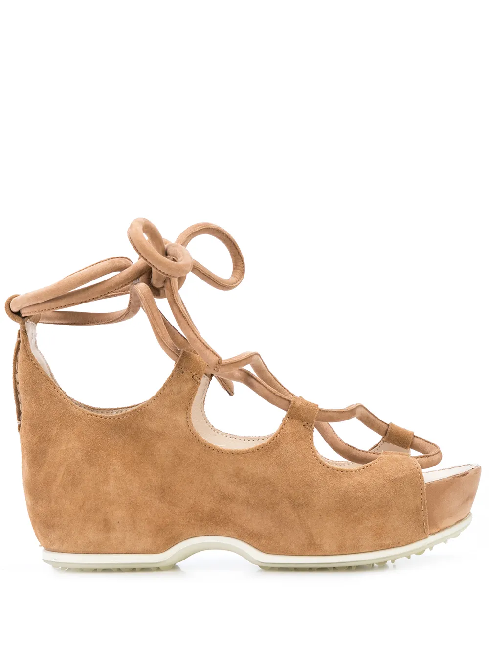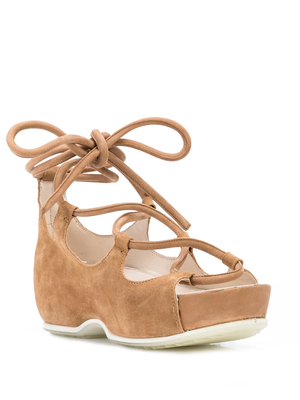 Босоножки на шнуровке от Rosetta Getty. Фирменная стелька, открытый носок, шнуровка спереди и каблук средней высоты.
