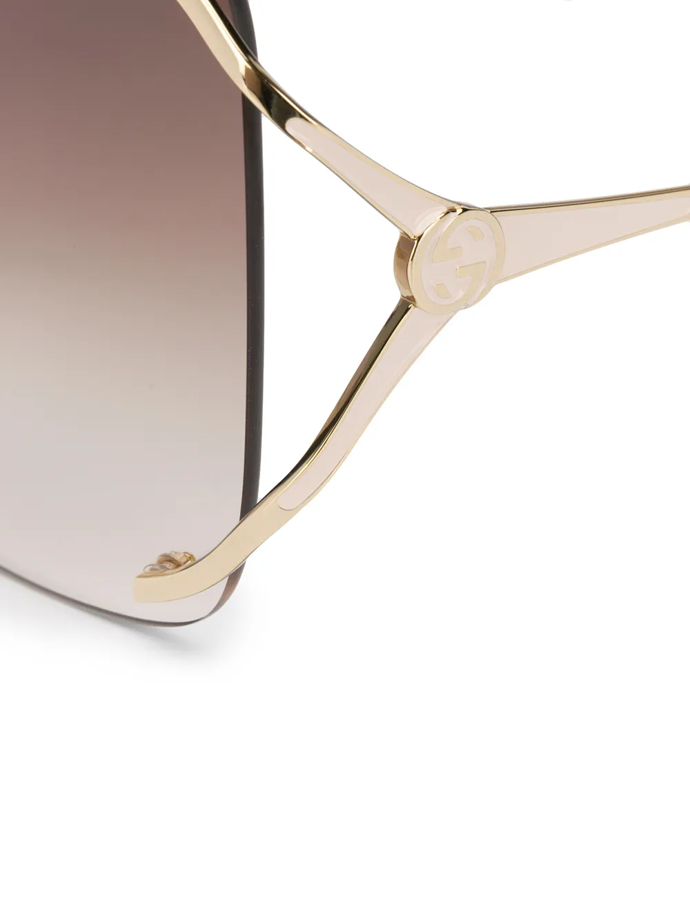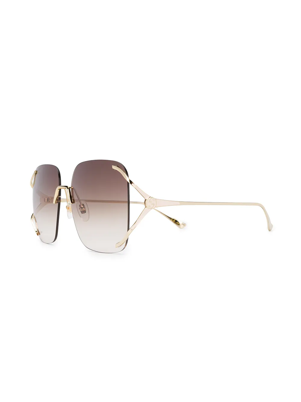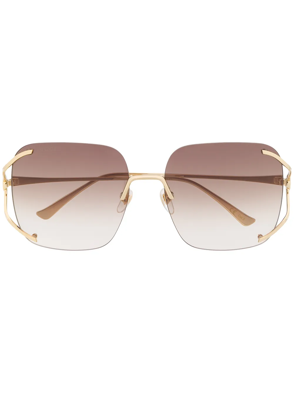 Квадратная оправа, градиентные линзы и тисненый логотип на дужке. Обратите внимание, что все очки, представленные на Farfetch, -без диоптрий.