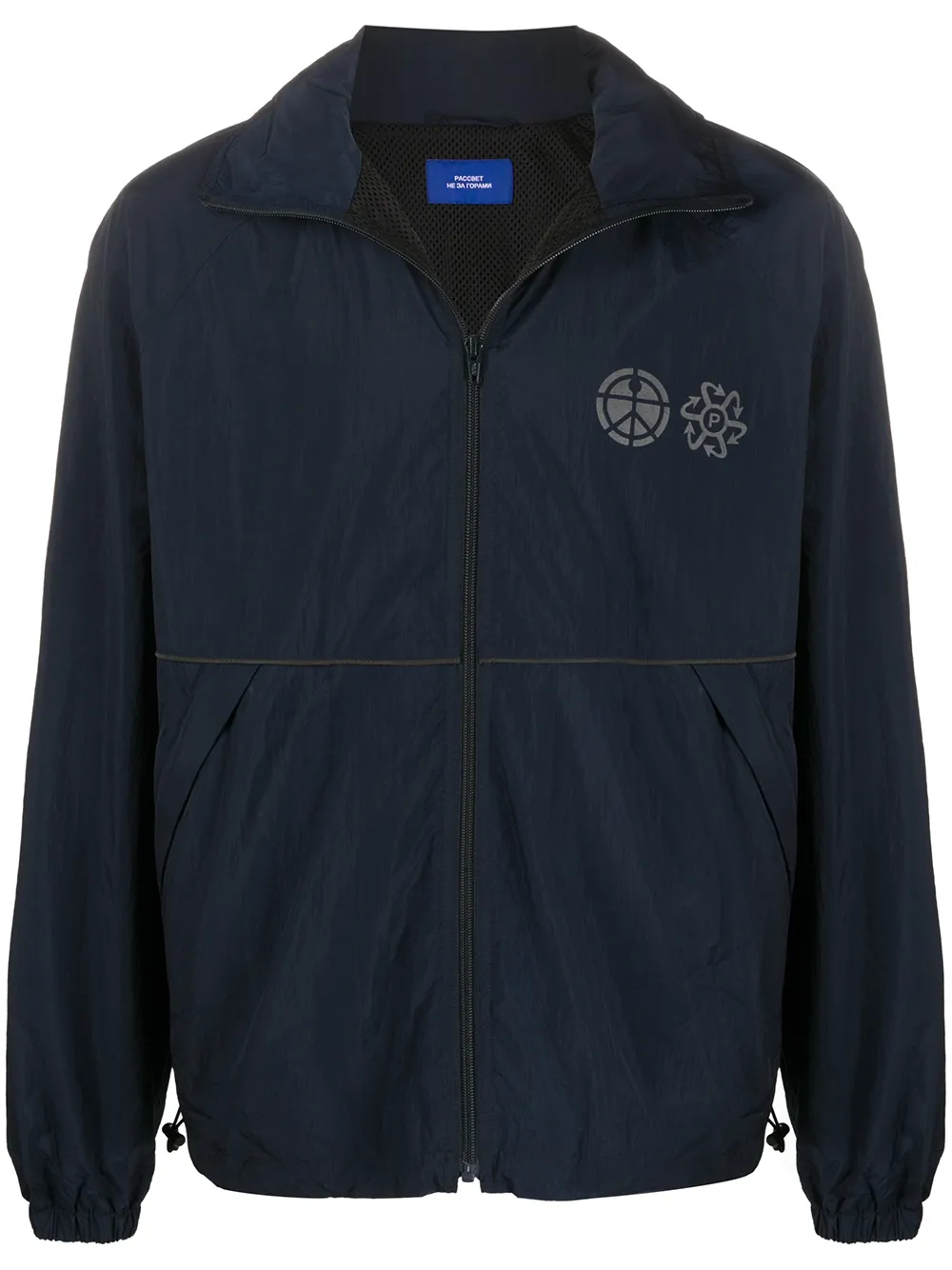 Спортивная куртка на молнии с капюшоном от Rassvet. Воротник-воронка, застежка на молнии спереди, длинные рукава и съемный капюшон.