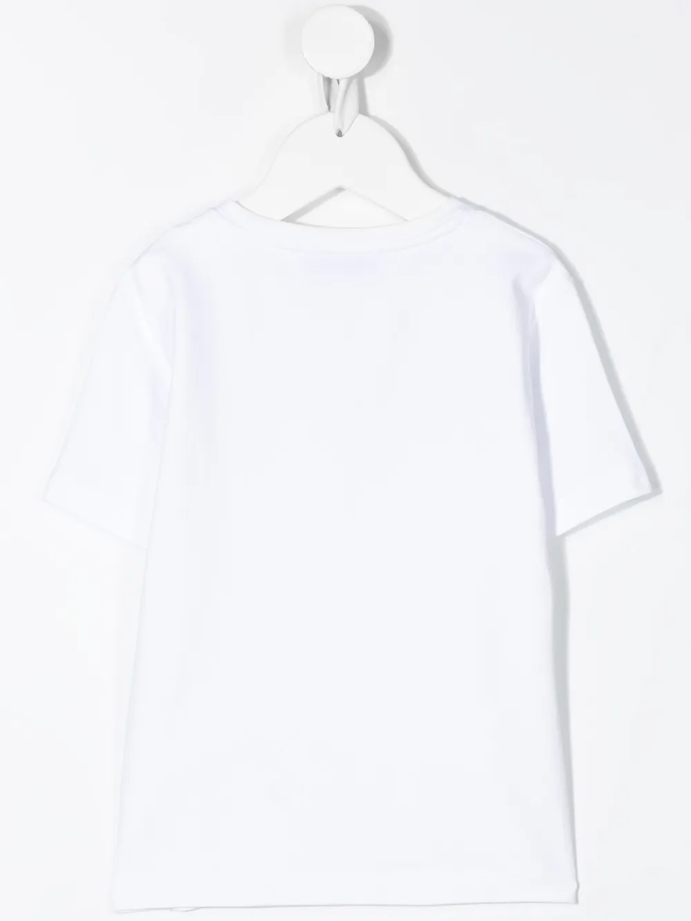 Футболка с декорированным логотипом от Dondup Kids. Круглый вырез, короткие рукава, свободный крой и прямой подол. Цвет: белый.