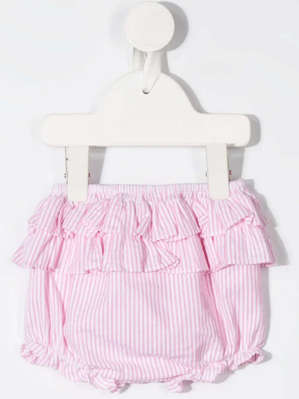 Блумеры в полоску с оборками от Siola. Узор в полоску, эластичный пояс, отделка с гофром, сборный дизайн и эластичный подол.