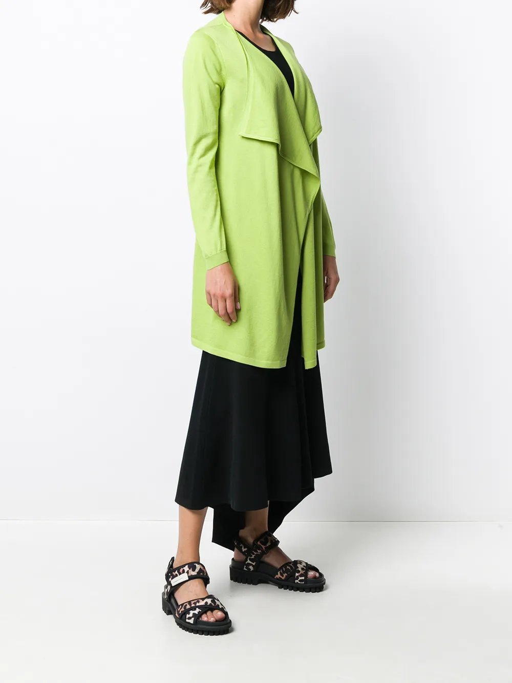 Кардиган с каскадной драпировкой от Malo. Драпированная юбка, длинные рукава и манжеты в рубчик. Цвет: зеленый.