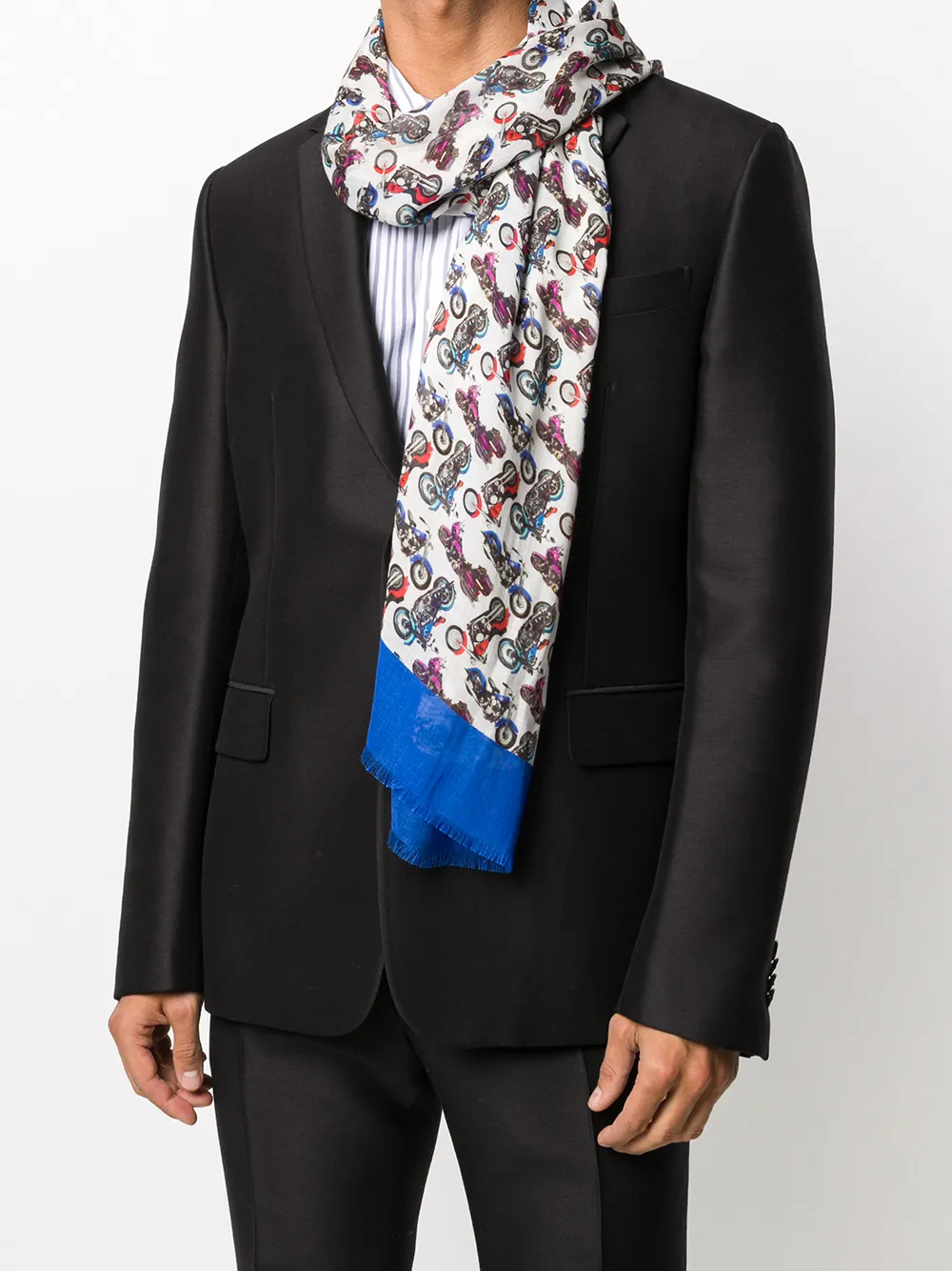 Шарф с принтом от Billionaire. Дизайн с бахромой, легкая конструкция и прямоугольная форма.