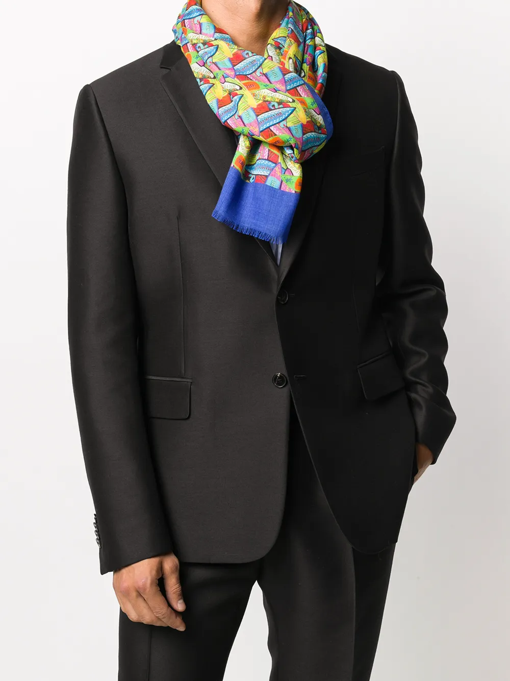 Шарф с принтом от Billionaire. Легкая конструкция, прямоугольная форма и дизайн с бахромой.