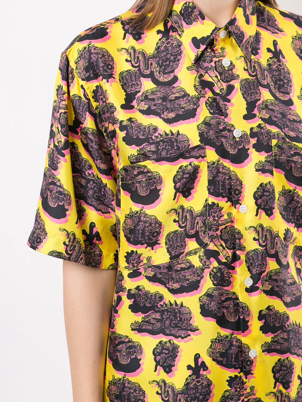 Графичный принт, классический воротник, два накладных кармана на груди, короткие рукава и застежка на пуговицах спереди. Цвет: желтый. POSITIVELY CONSCIOUS: Мы объединились с агентством Good On You, которое составляет рейтинг ответственных марок. Этот бренд получил отметку «Ответственный выбор», так как отвечает ключевым стандартам агентства.