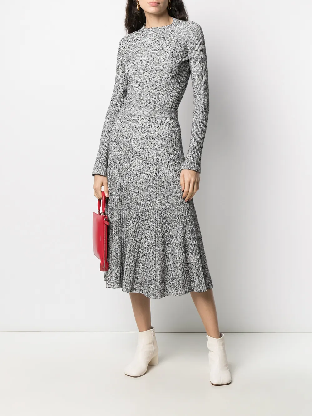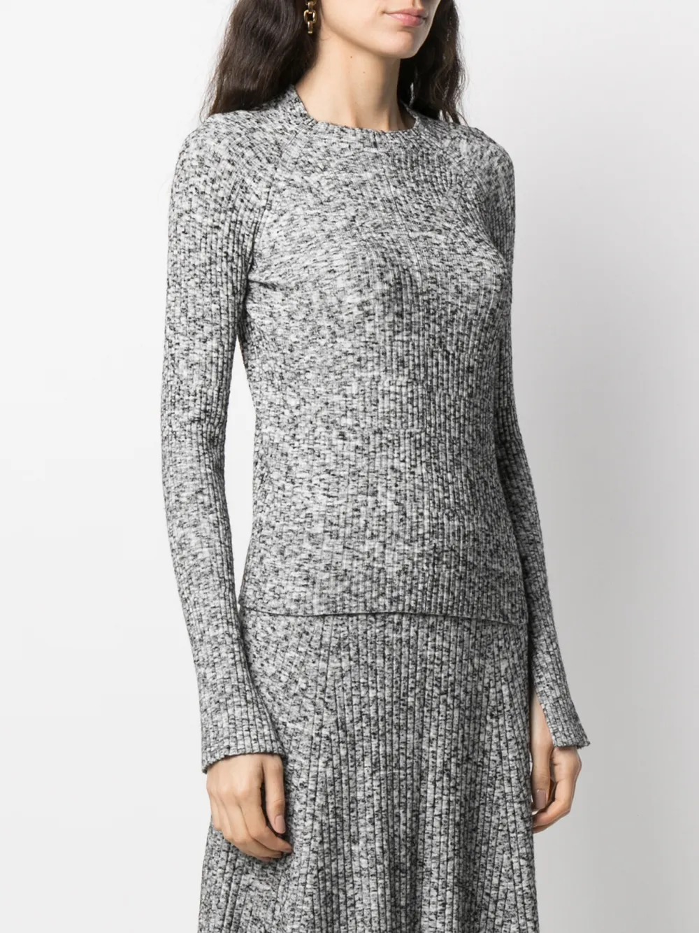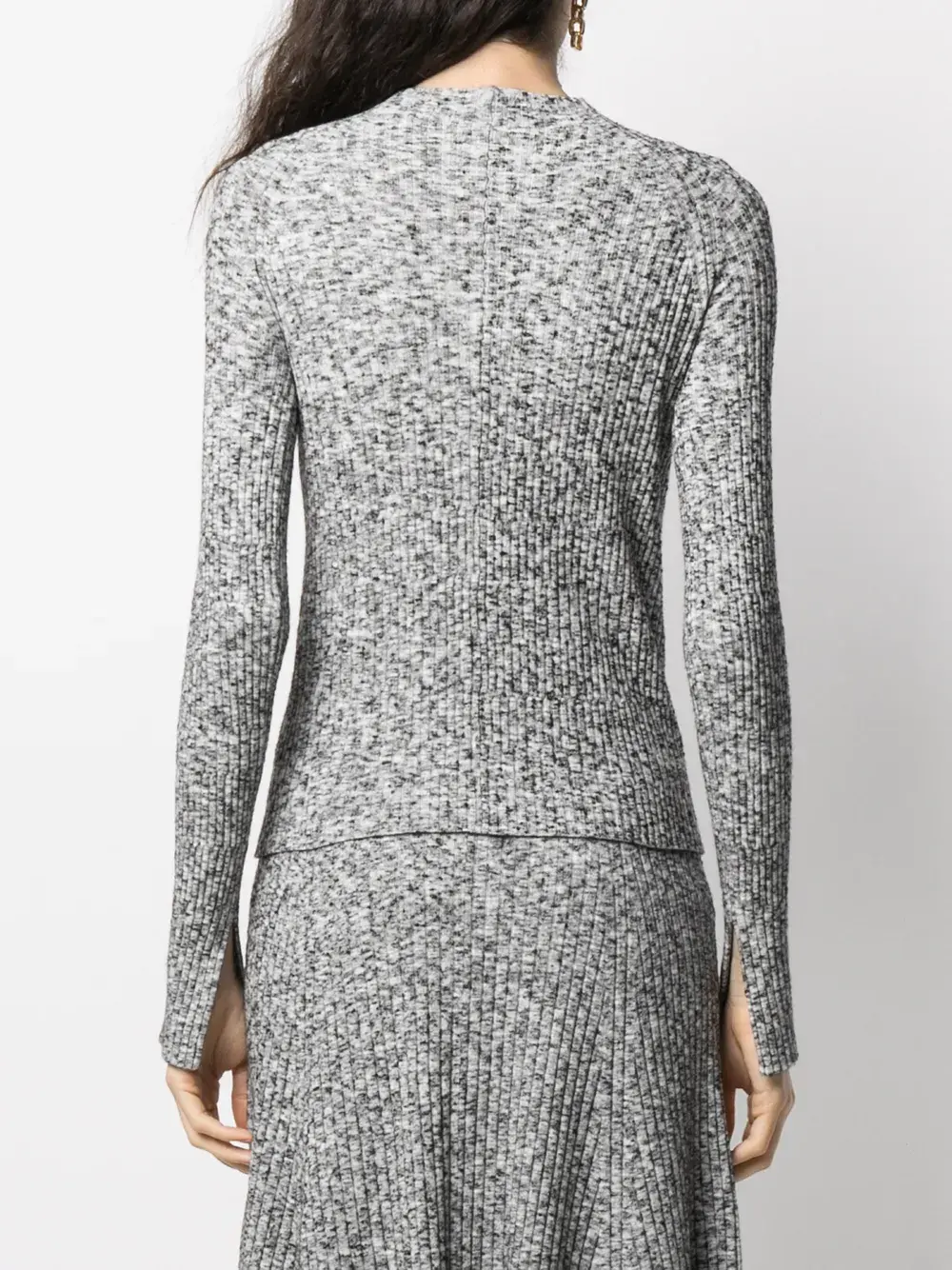 Вязаный дизайн, круглый вырез и длинные рукава. Цвет: серый.
