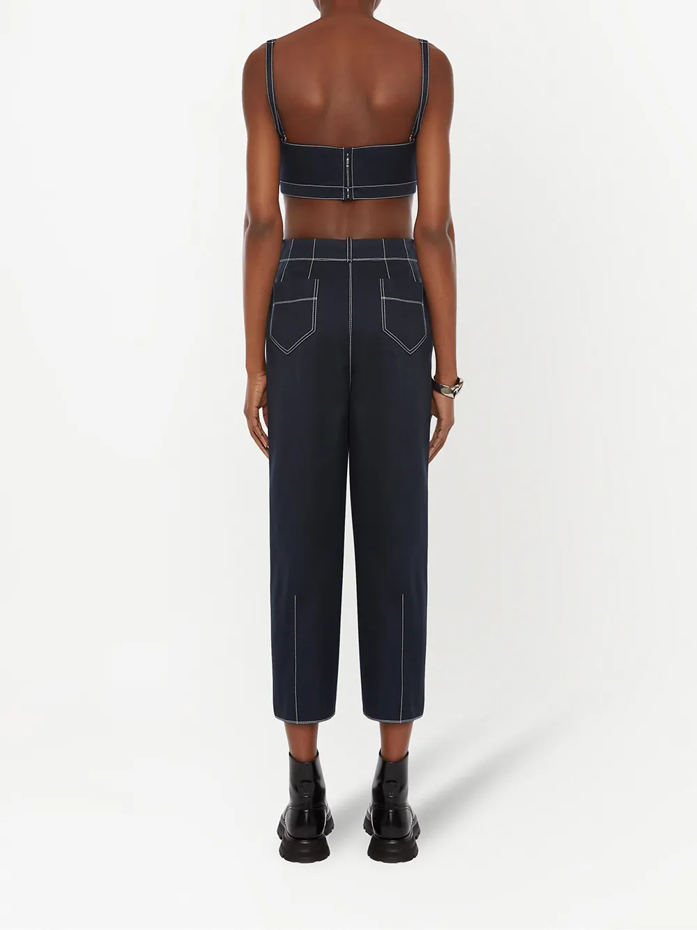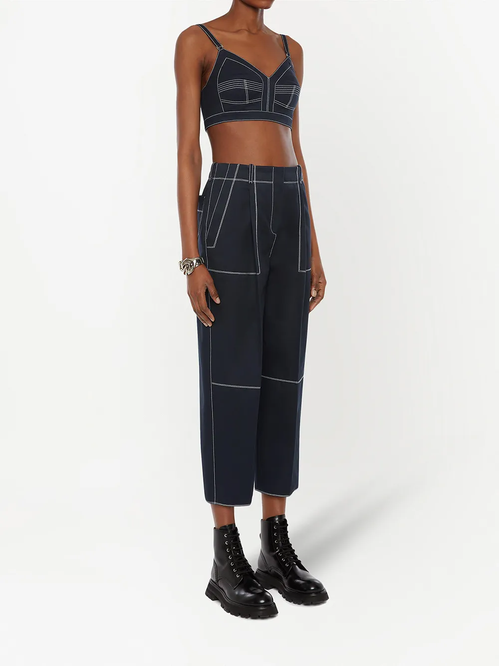 Укороченный топ с контрастной строчкой Alexander McQueen, синий 46 253₽