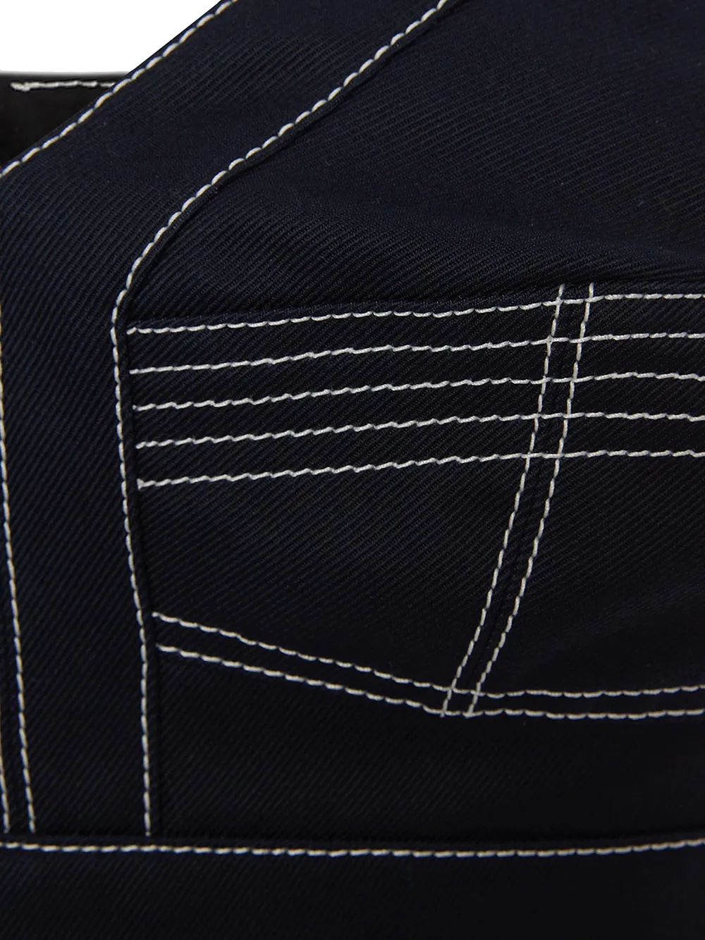 Вырез в форме сердца, контрастная строчка, регулируемые лямки, укороченная длина и застежка на молнии сзади.