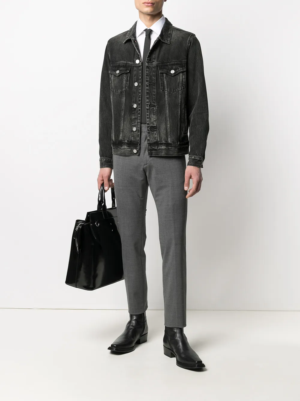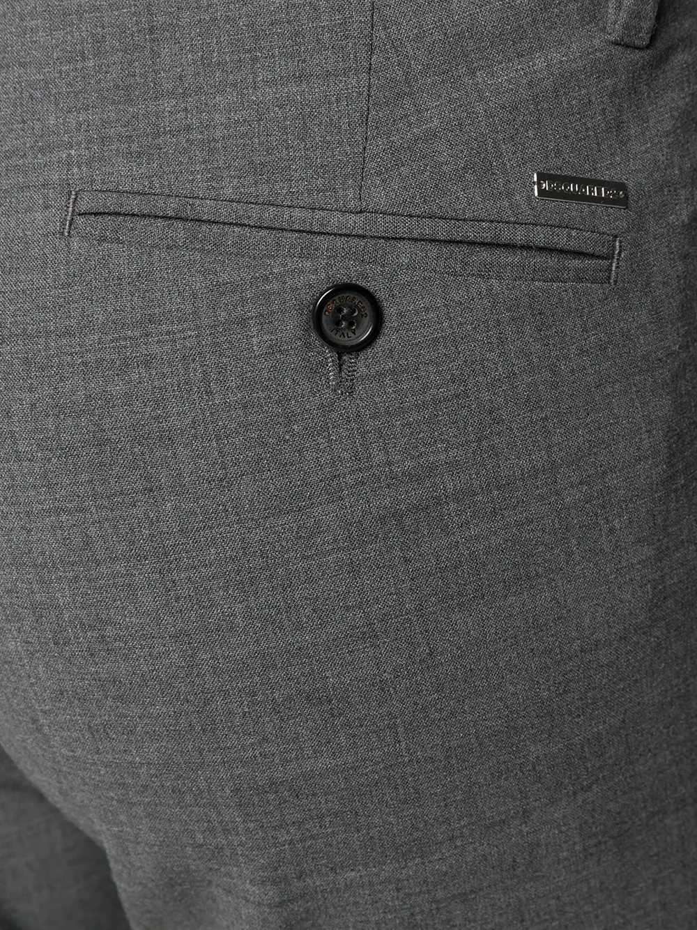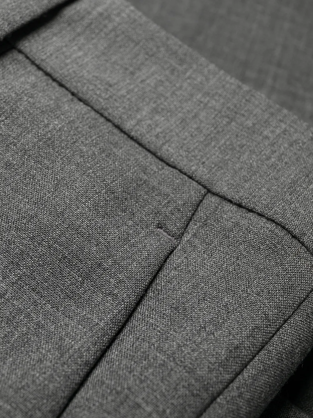 Петли для ремня, потайная застежка спереди, прорезные карманы по бокам, тональная строчка, два кармана с листочкой сзади, зауженный крой и строгий крой. Цвет: серый.