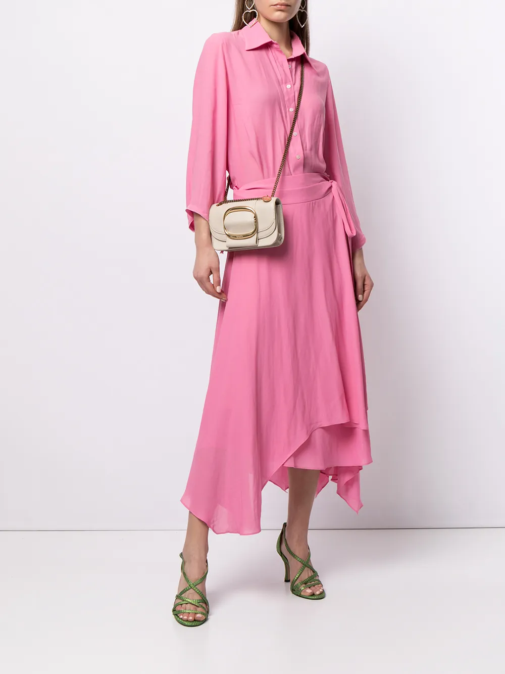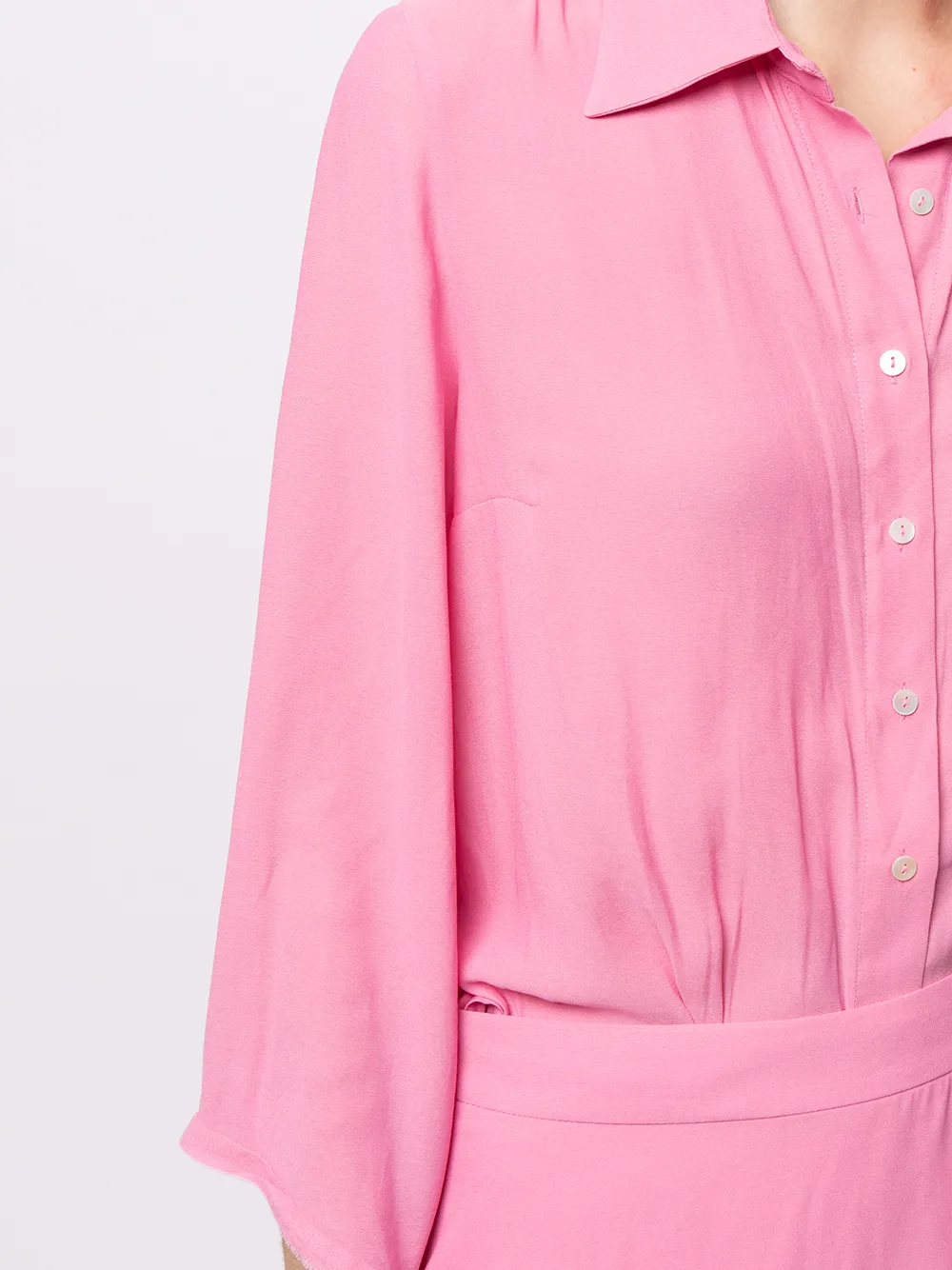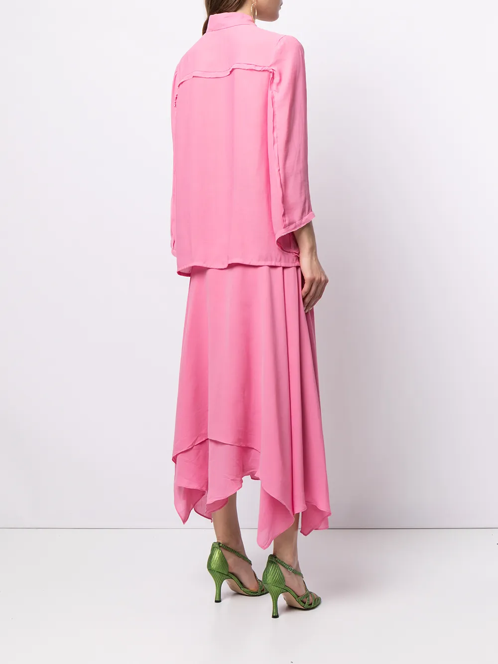 Розовый необработанные края классический воротник планка на пуговицах спереди прямой подол