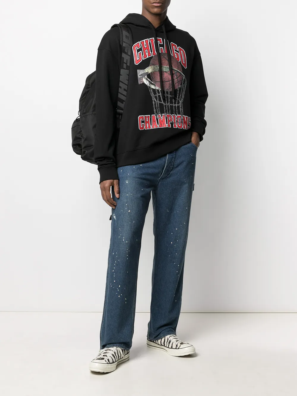 Графичный принт, графичный принт на спине, затягивающийся на шнурок капюшон и длинные рукава.