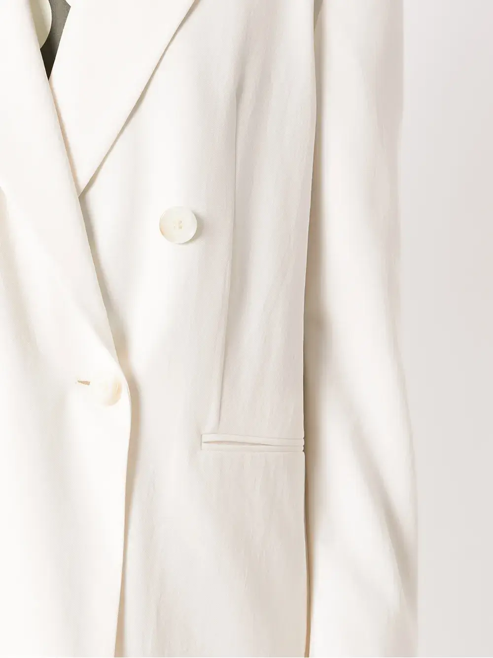 Зазубренные лацканы, длинные рукава, манжеты на пуговицах, двубортная застежка на пуговицы, два передних кармана с листочкой и шлица по центру сзади. Цвет: белый. POSITIVELY CONSCIOUS: Эта вещь сделана из переработанных или вторично использованных материалов, на производство которых уходит меньше воды, энергии и сырья. Мы рекомендуем стирать вещи из переработанных синтетических тканей в специальном мешке, чтобы микропластик не попадал в сточные воды..
