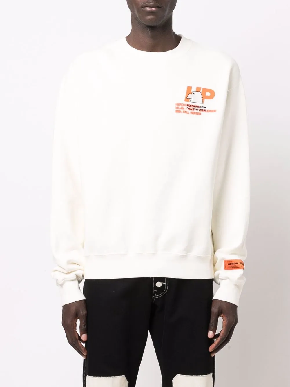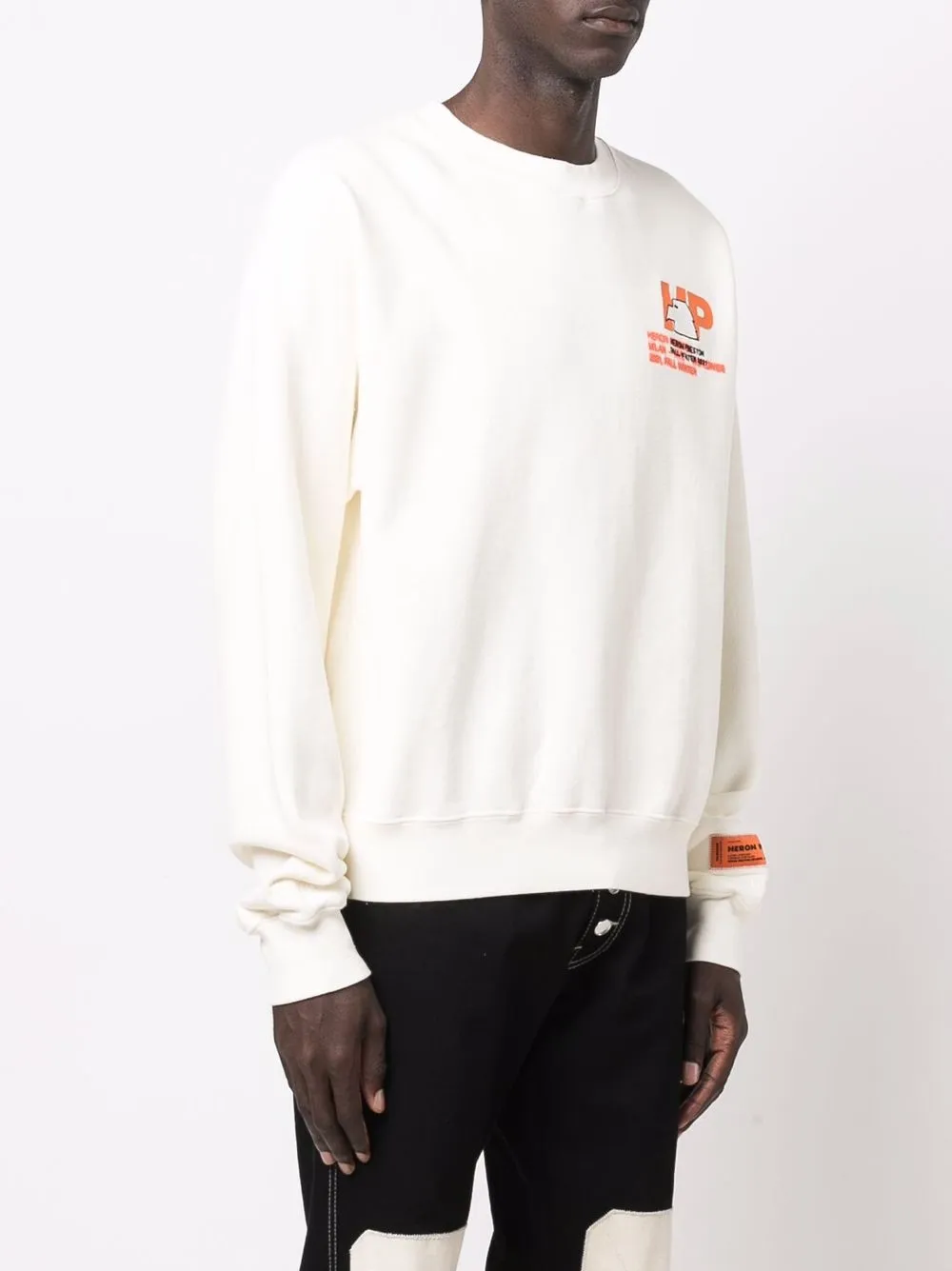 Кремовый органический хлопок круглый вырез принт с логотипом на груди вышитый логотип на груди прямой подол длинные рукава нашивка с логотипом на рукаве POSITIVELY CONSCIOUS: В состав этой вещи входит не менее 50% органических материалов. Сырье для них закупают у фермеров, которые придерживаются ответственных сельскохозяйственных практик: минимизируют использование синтетических удобрений и генетически модифицированных семян, улучшают качество почвы и условия содержания скота.