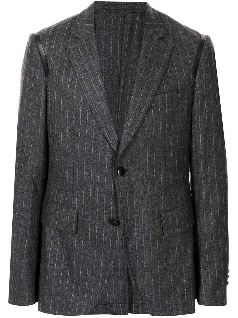 Пиджак с кожаной отделкой Ferragamo, серый 122 776₽