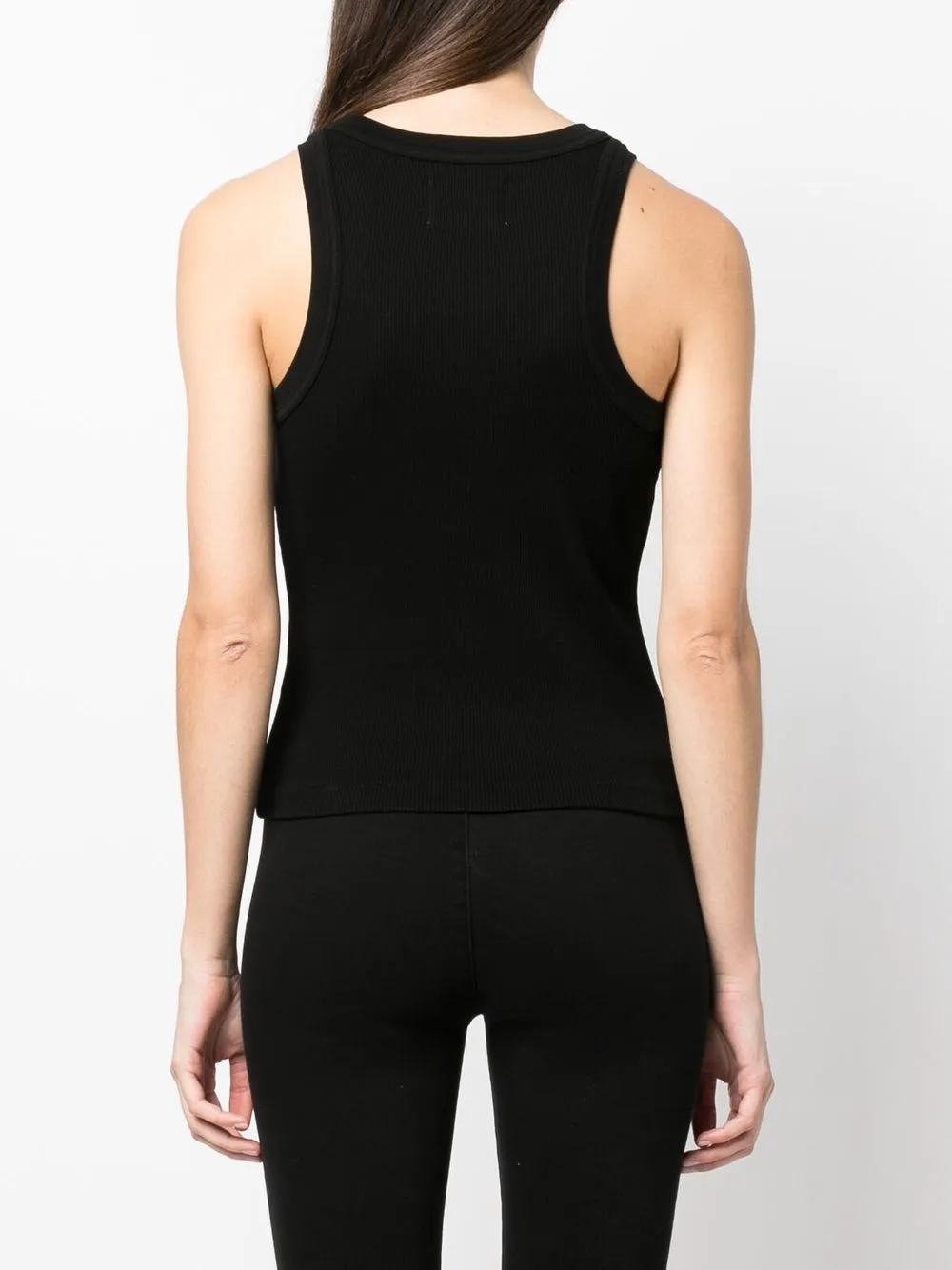 Черный, эластичный хлопок, детали в рубчик, круглый вырез, без рукавов и прямой подол. . Узнать больше о том, какие товары получают отметку «Ответственный выбор», можно из материала «Как мы оцениваем экологичность и этичность».