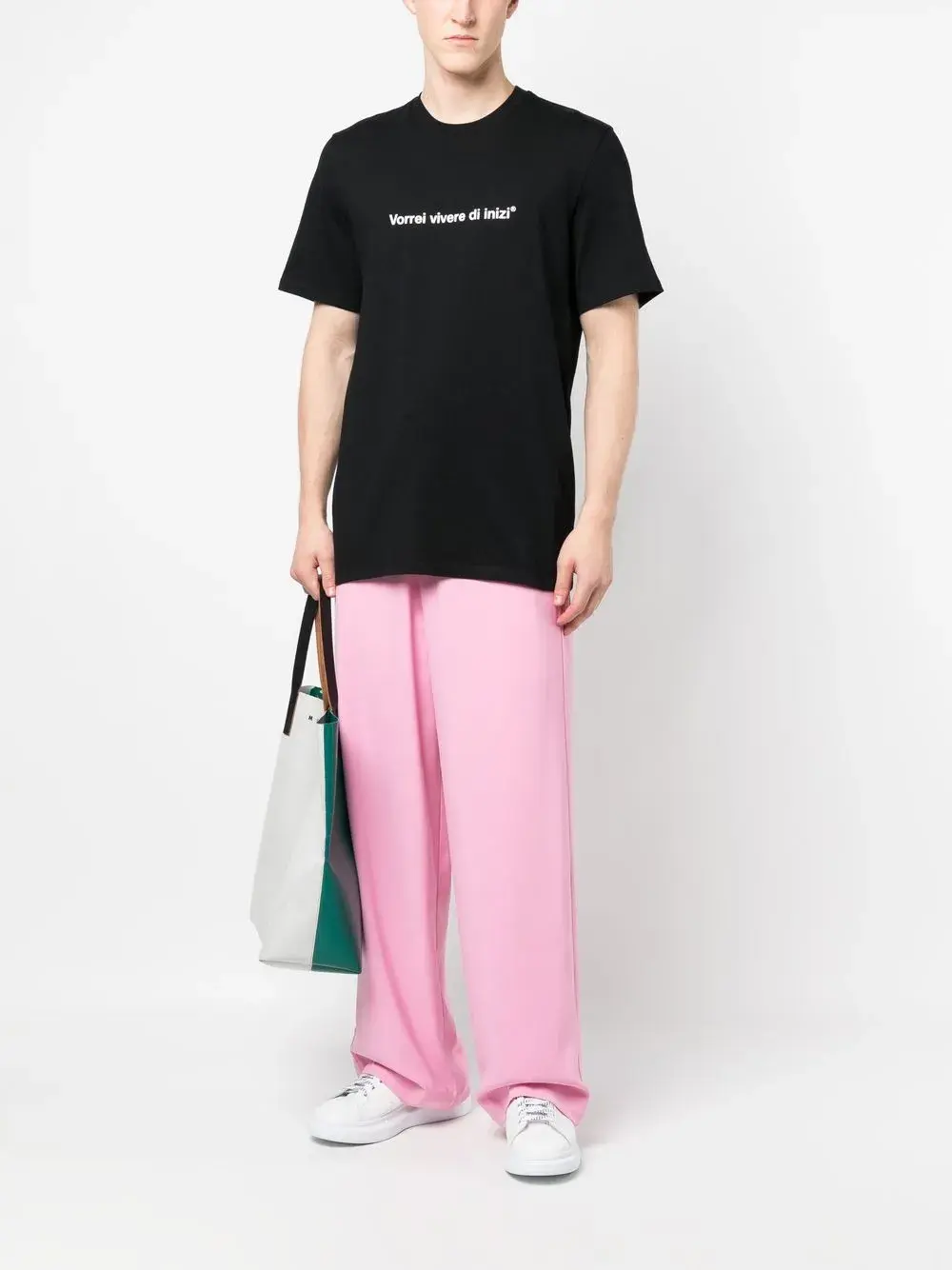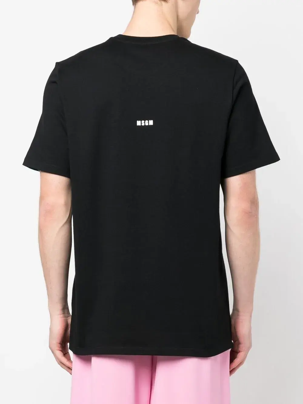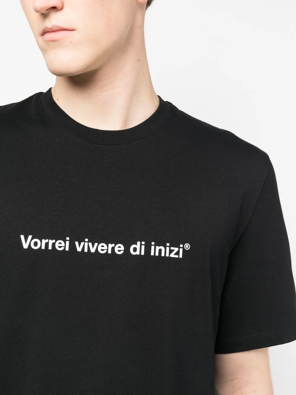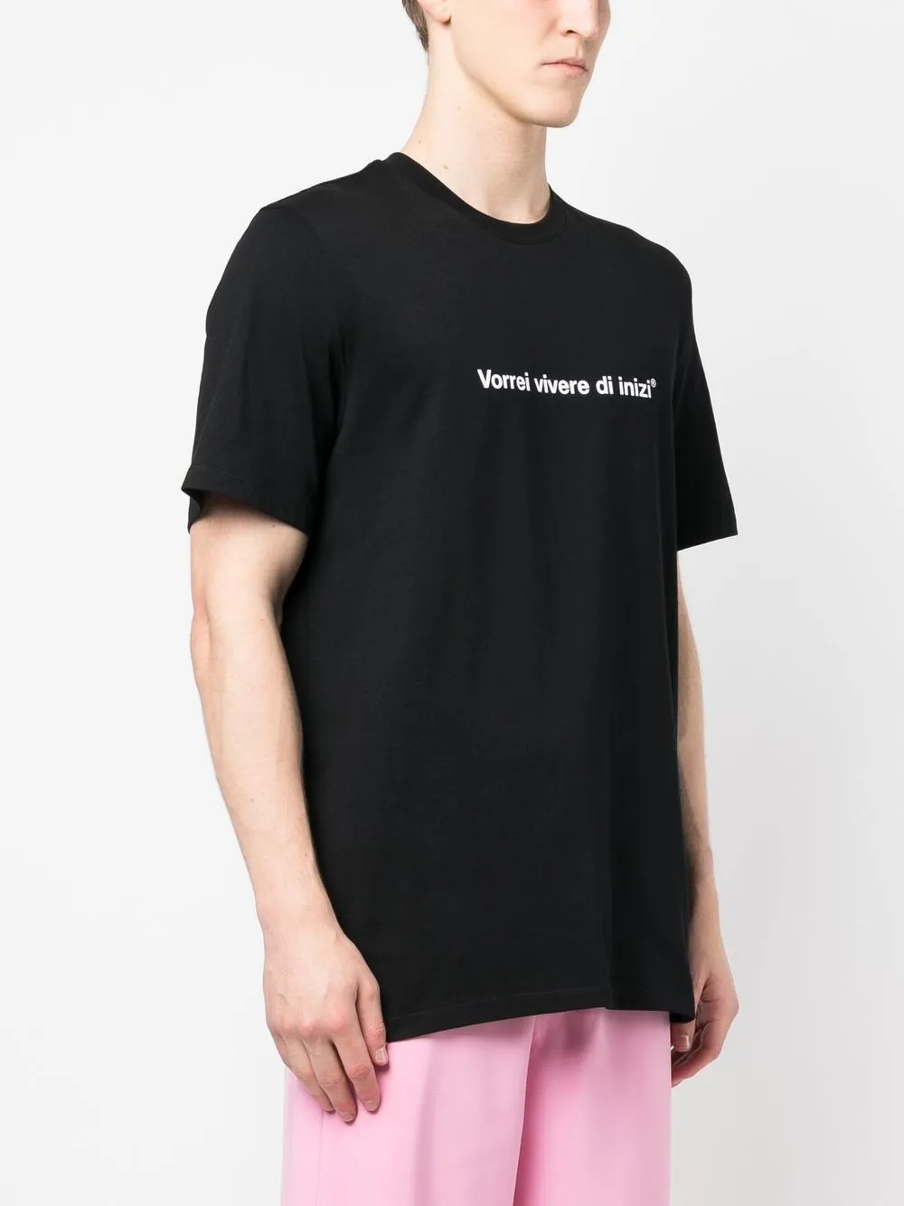 Черный, хлопок, ткань джерси, принт с надписью, круглый вырез, короткие рукава и прямой подол.