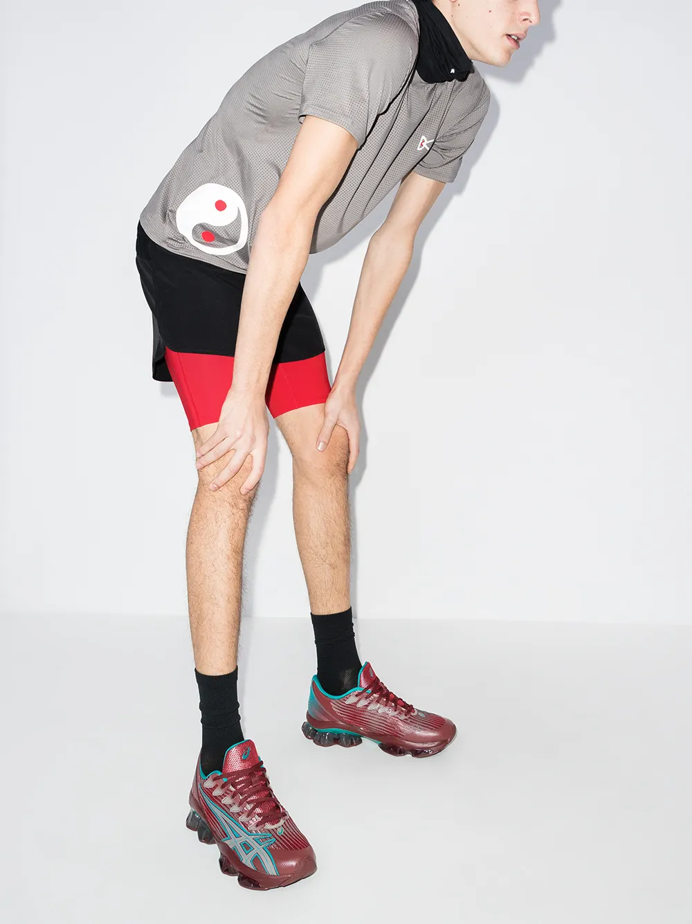 Компрессионная подкладка, эластичный пояс на шнурке, карман на молнии сзади и принт с логотипом сзади.