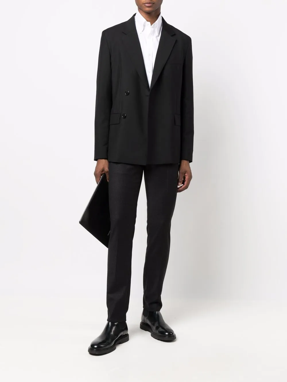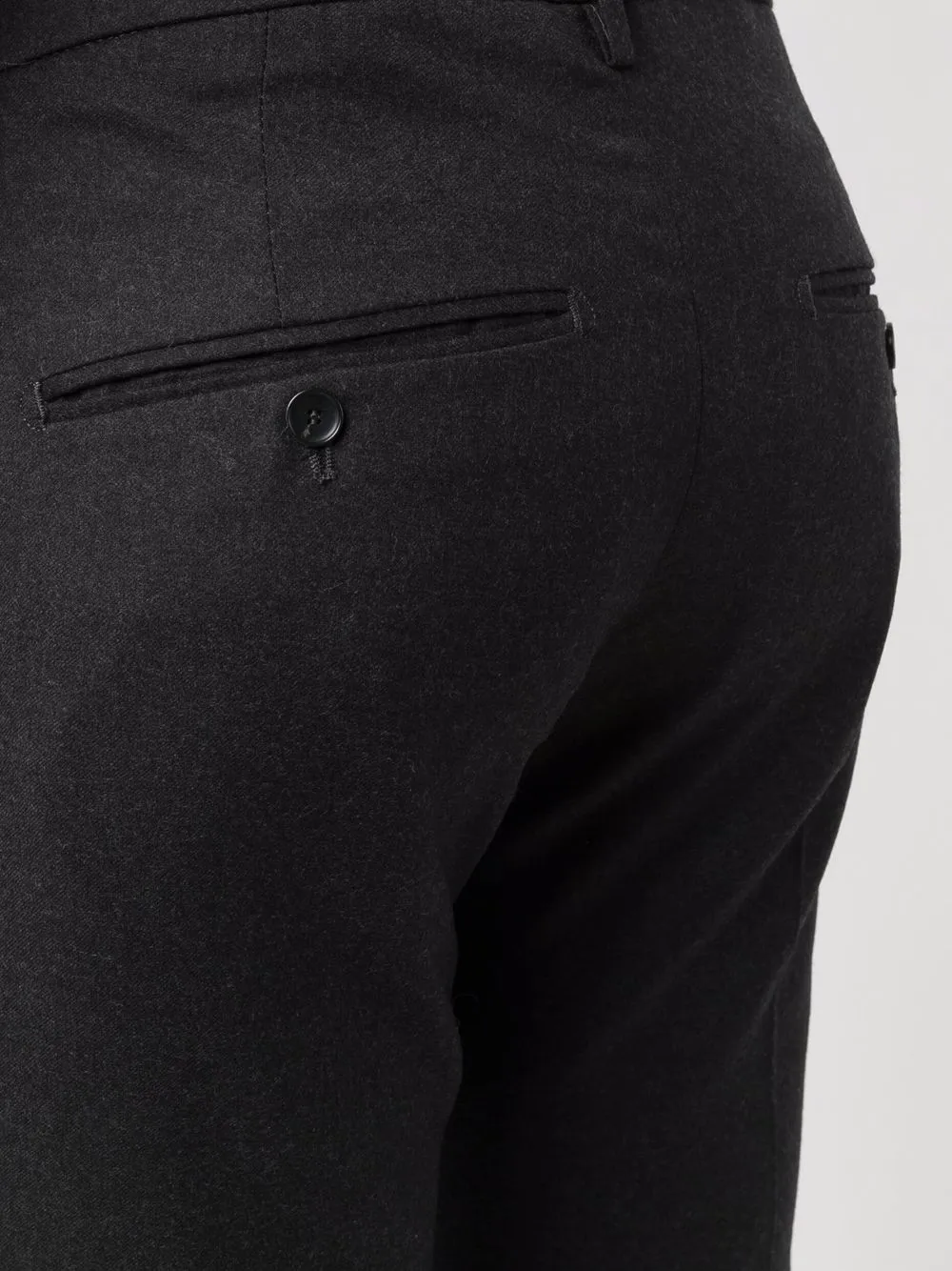 Средняя посадка, петли для ремня, потайная застежка спереди, два вшитых кармана по бокам, два кармана с листочкой сзади, узкий крой и длина по щиколотку.