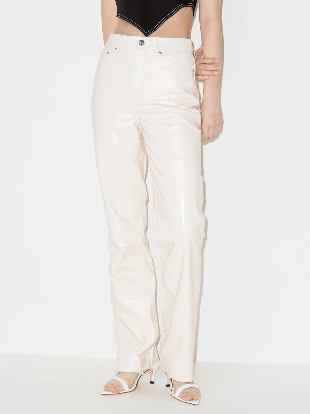 Кожаные брюки Lynn прямого кроя REMAIN, белый