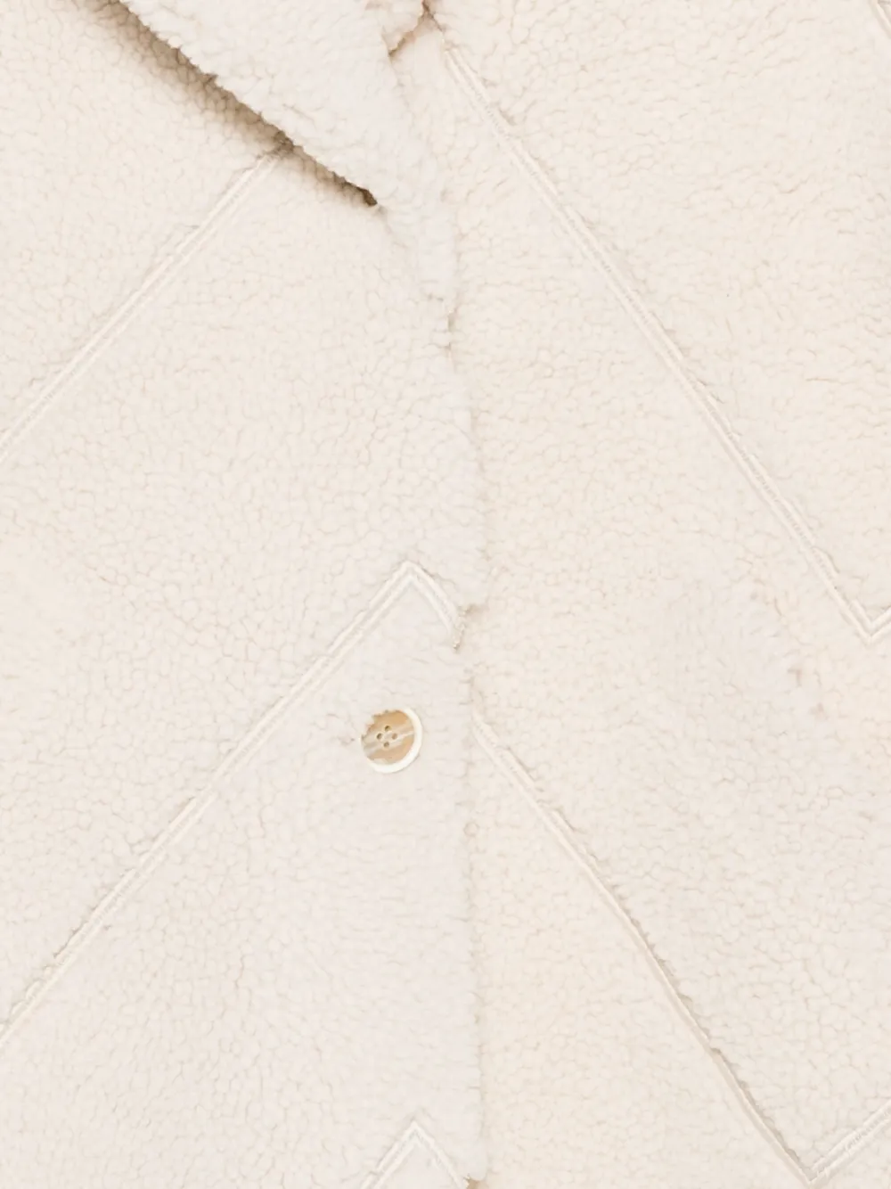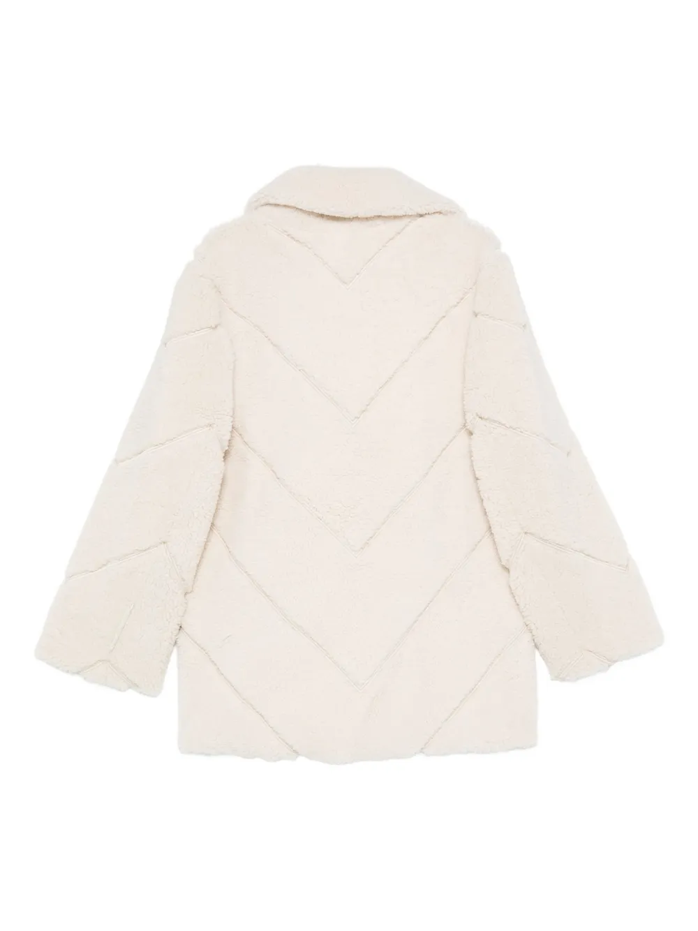 Кремово-белая дубленка с зигзагообразным узором, застежкой на пуговицы, лацканами с вырезом и длинными рукавами