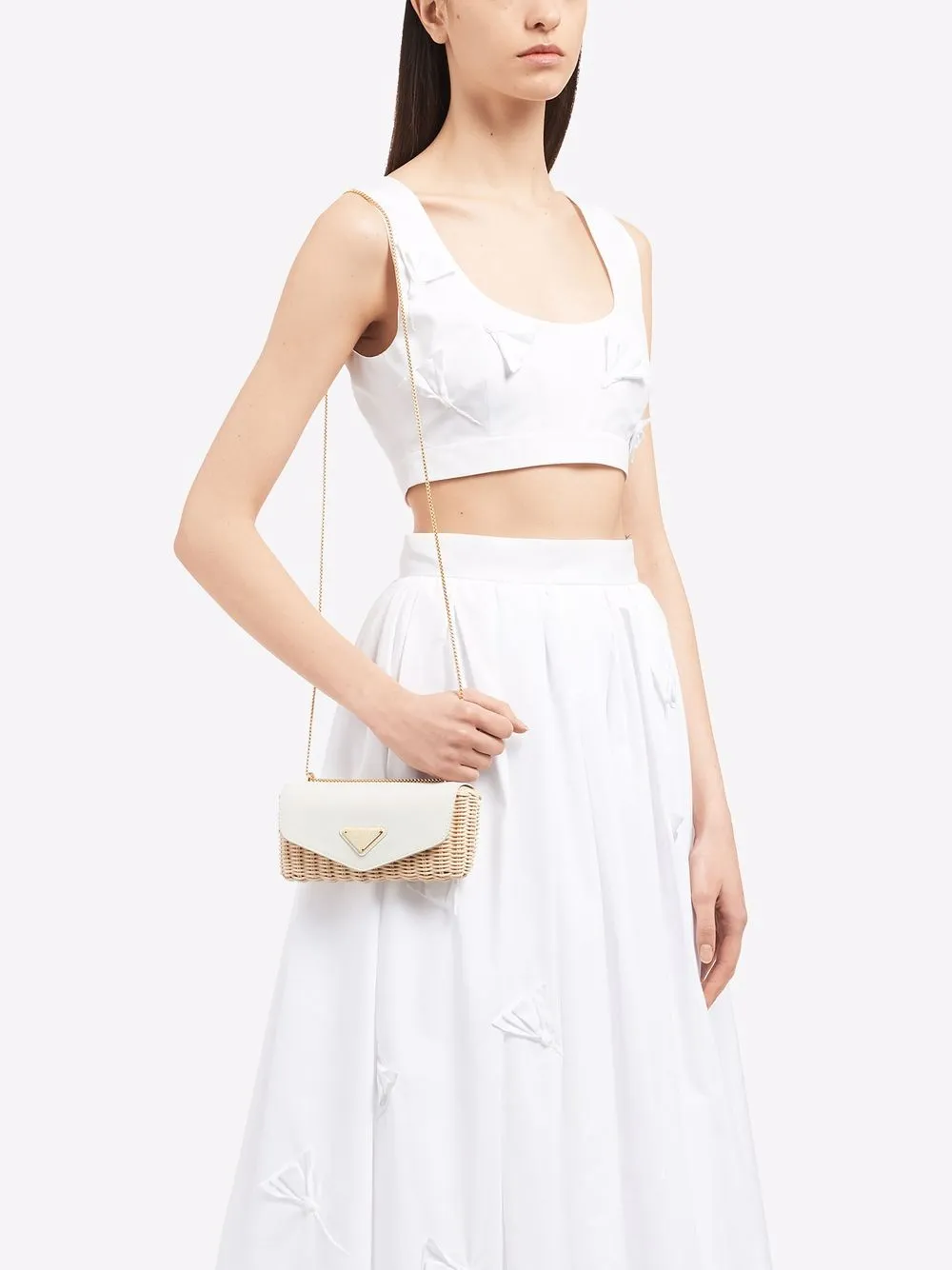 Плетеная мини-сумка с логотипом Prada, белый