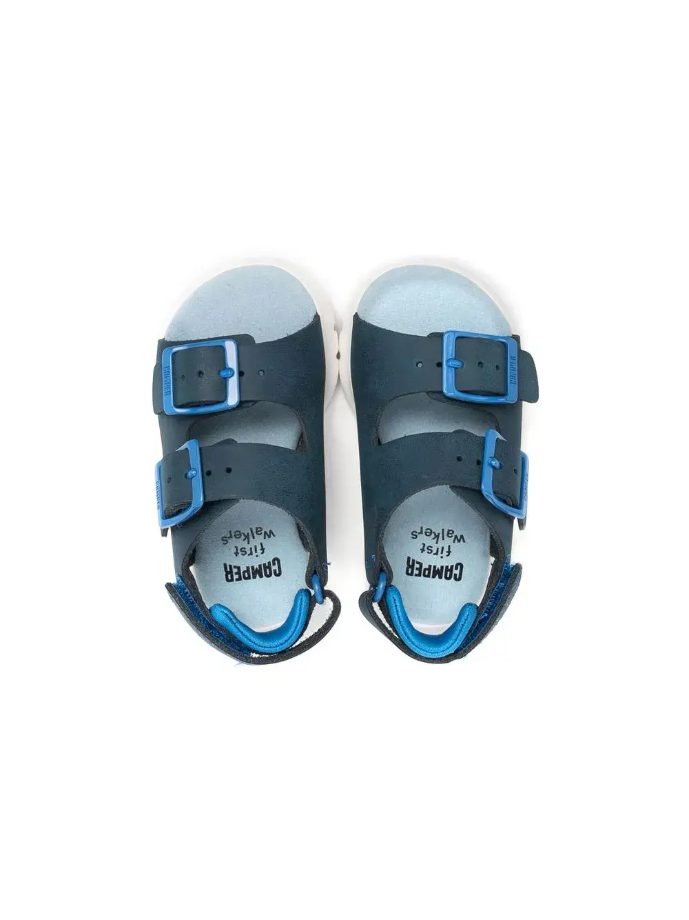 Подробнее о товаре: Темно-синий, кожа, пряжка на носке, открытый носок, застежка на липучке и плоская подошва. Кожа в составе этого товара сделана на фабрике, сертифицированной организациями Leather Working Group (LWG) или ICEC. Это гарантирует, что производитель минимизировал негативное влияние материала на окружающую среду. Узнать больше о том, какие товары получают отметку «Ответственный выбор», можно из материала «Как мы оцениваем экологичность и этичность».
