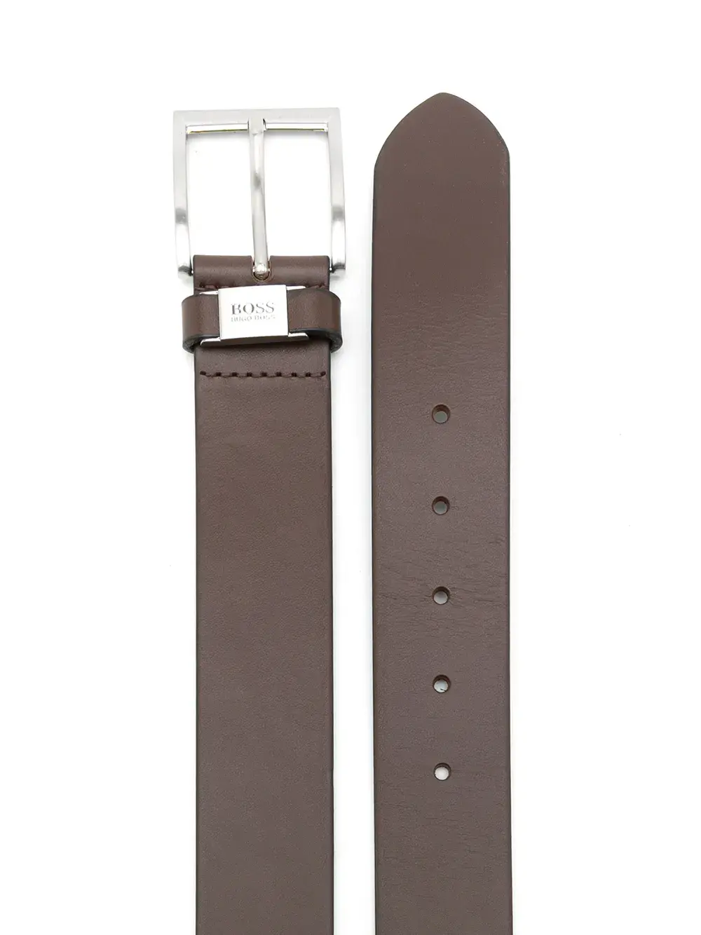 Регулируемый дизайн, серебристый металлический логотип, застежка на серебристой пряжке и прорезанные отверстия. Цвет: коричневый.