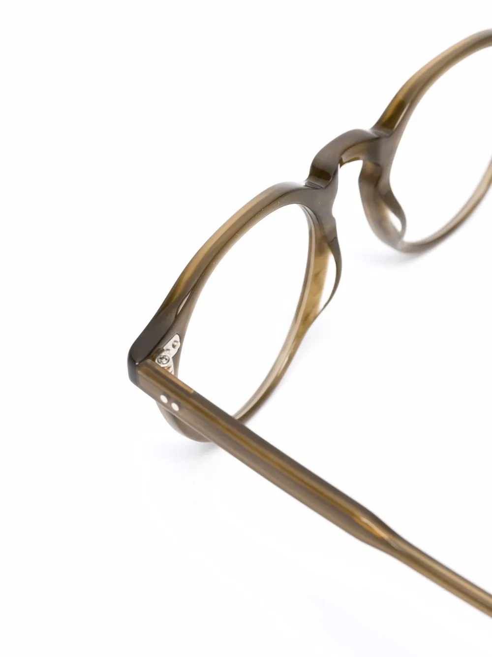 Круглая оправа, прозрачные линзы, прямые дужки и дужки с закругленными концами. В комплект входит защитный чехол для очков. Обратите внимание, что на FARFETCH продаются оправы с линзами без диоптрий.