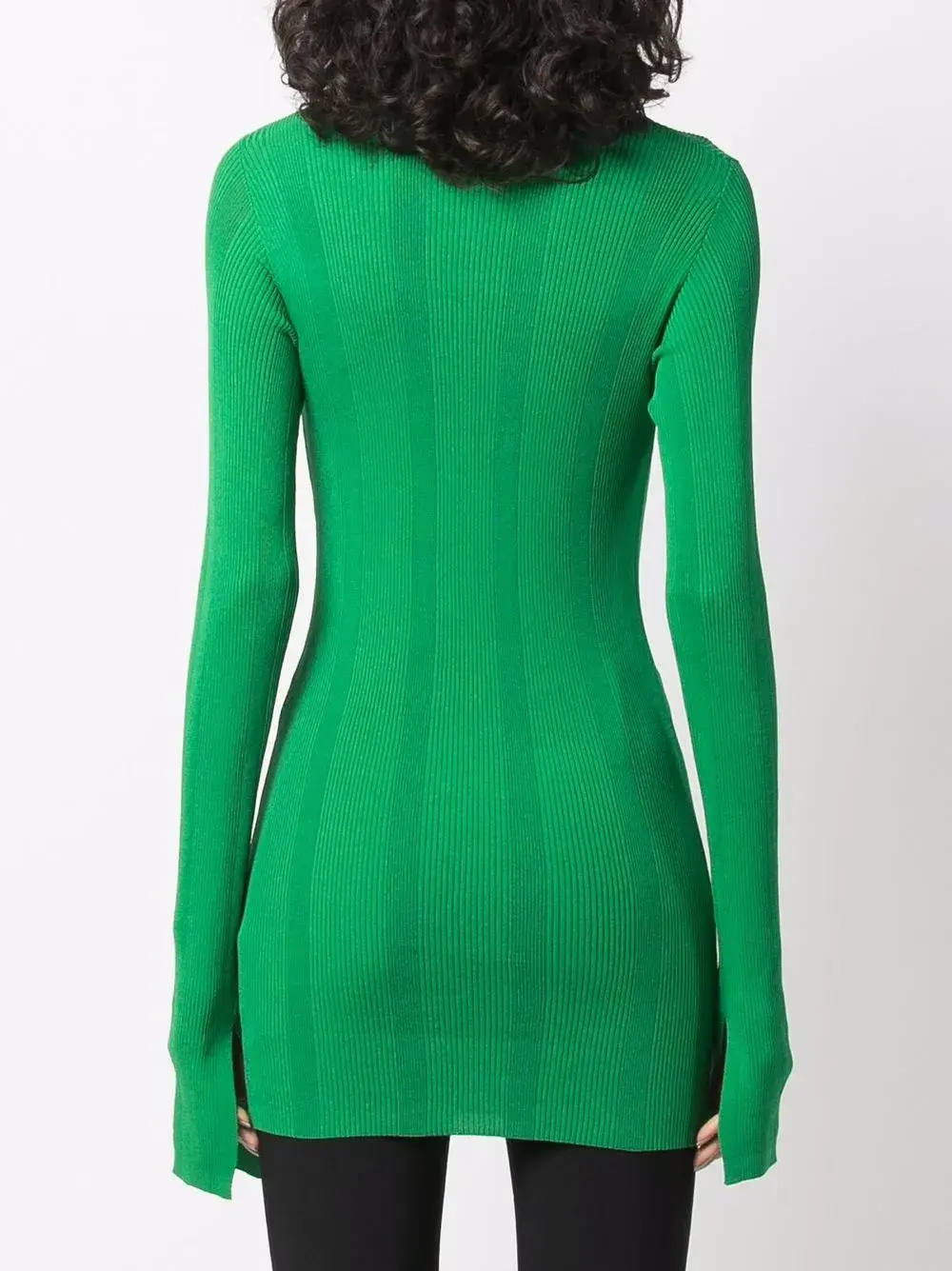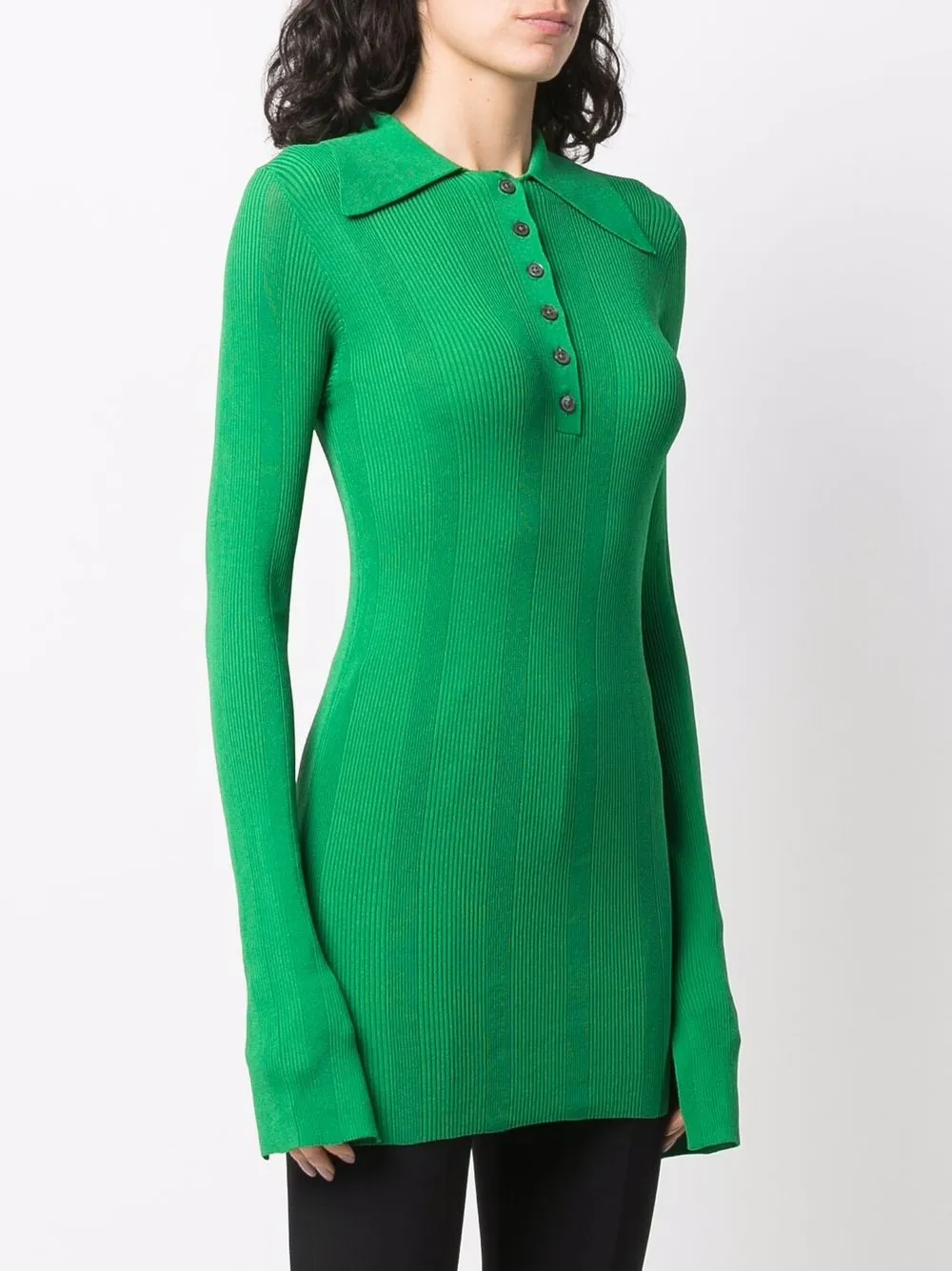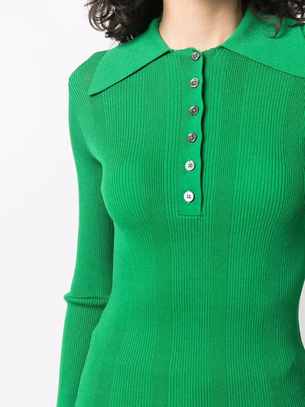 Ткань в мелкий рубчик, воротник поло, планка на пуговицах спереди и короткие рукава. Цвет: зеленый.
