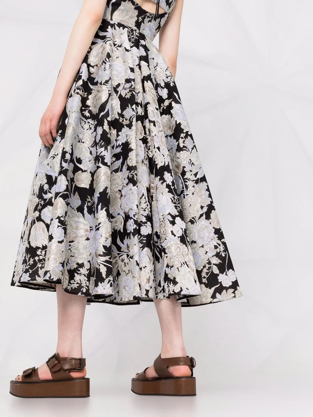 Расклешенное платье Rea с цветочным узором ERDEM, черный 195 565₽