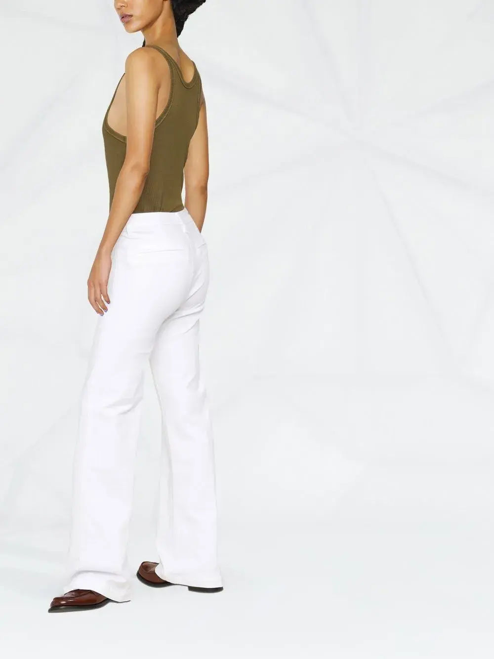 Однотонная расцветка, застежка на молнии и пуговице спереди, петли для ремня, два накладных кармана спереди и два кармана с листочкой сзади. Цвет: белый.