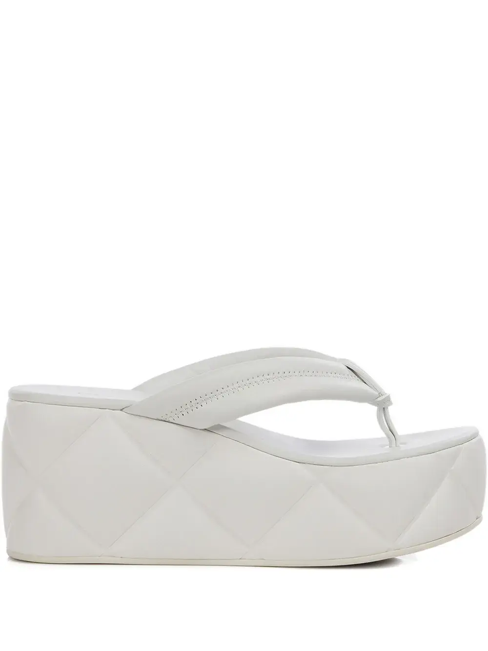 Белые шлепанцы с эффектом стеганой отделки, платформой, ремешком через палец и открытым носком