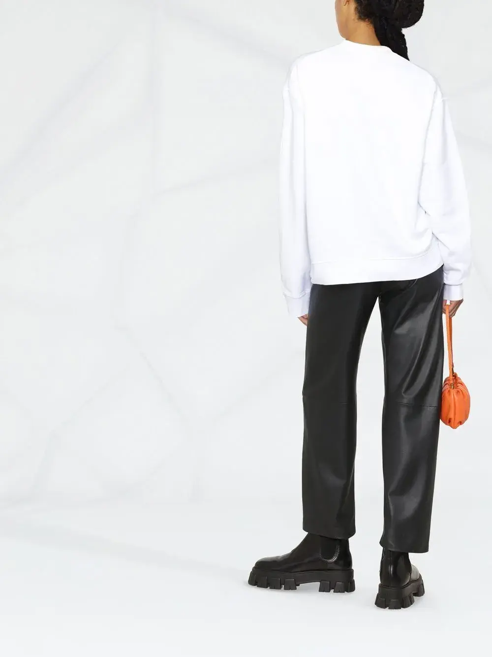 Белый, хлопок, круглый вырез, логотип спереди, приспущенные плечи, длинные рукава и прямой подол.