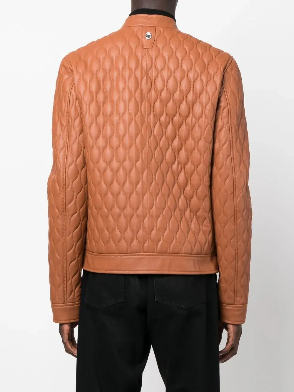 Расцветка Light Brown, овечья кожа, узор с эмблемой, стеганая модель, воротник-стойка, застежка на молнии спереди, длинные рукава, два прорезных кармана по бокам и прямой подол.