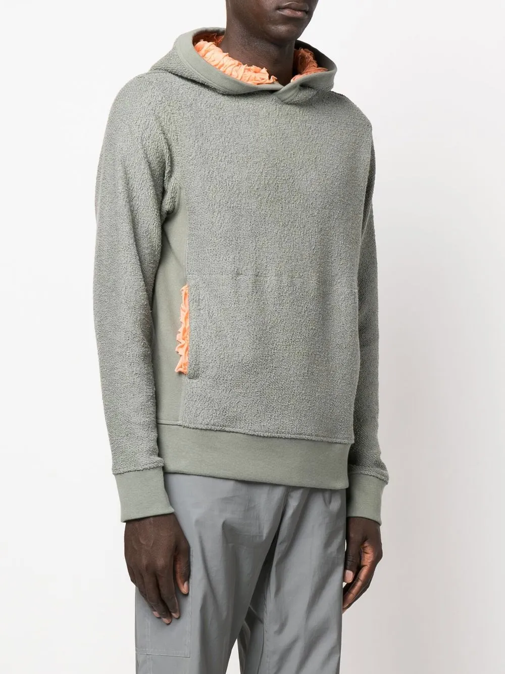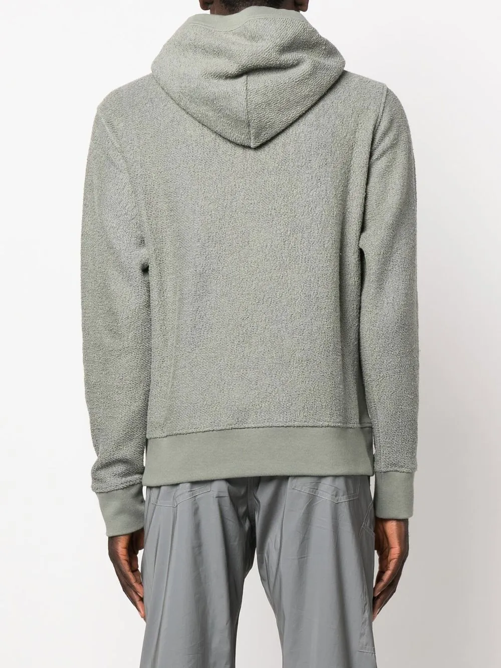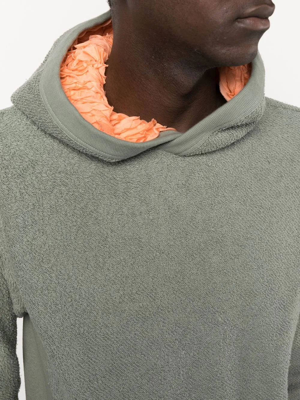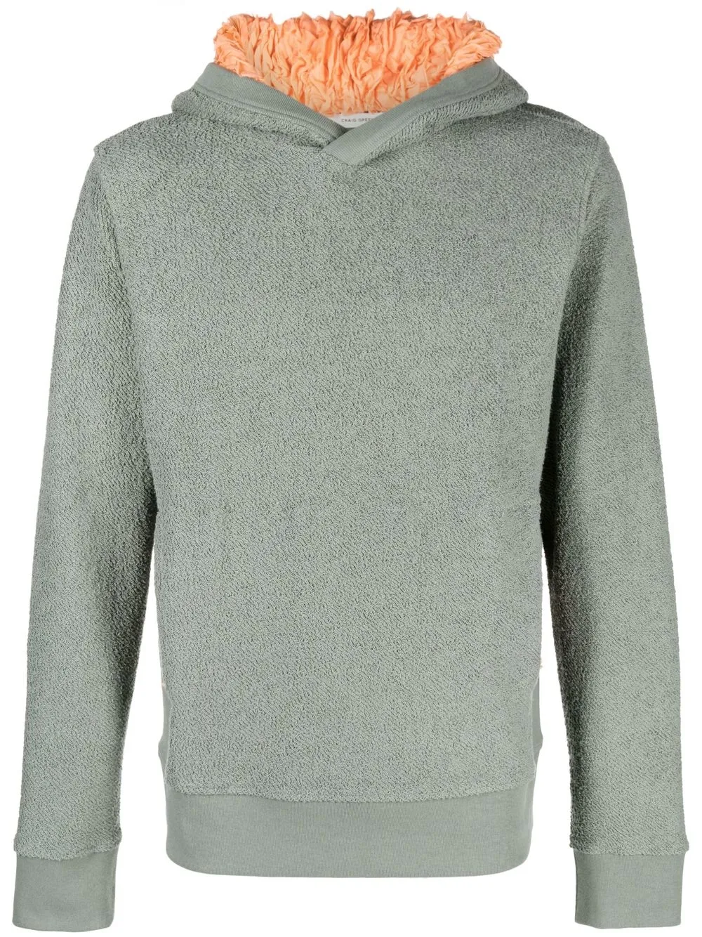 Хаки, хлопок, классический капюшон, длинные рукава, карман-муфта и полотенечная ткань.