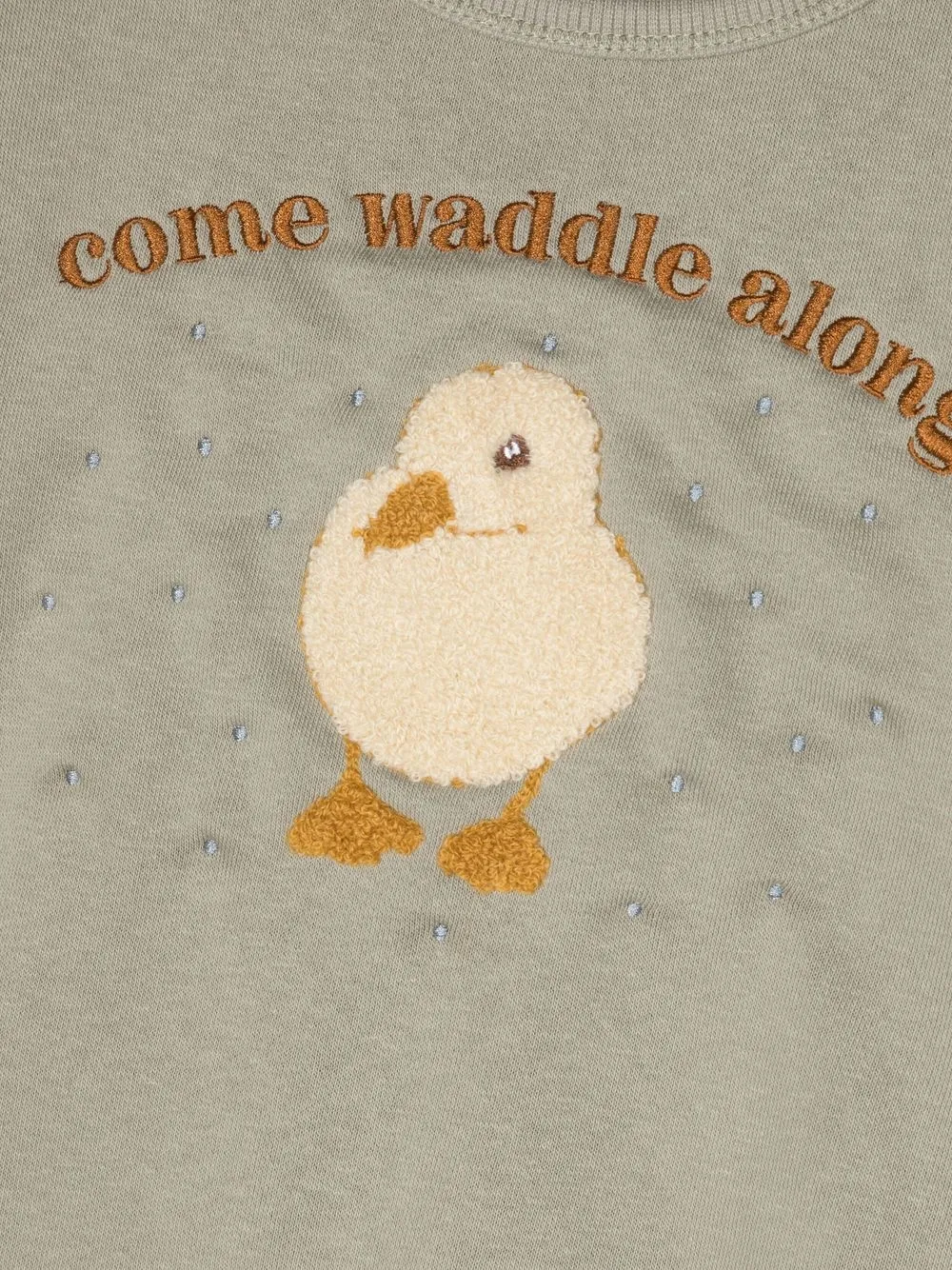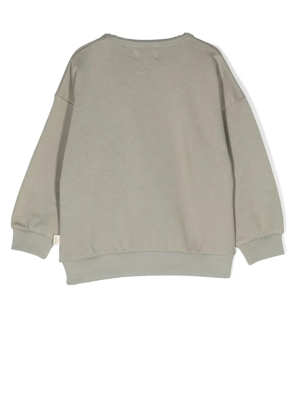 Серо-зеленый, смесовый органический хлопок, вышитый логотип на груди, вышитая надпись, круглый вырез, длинные рукава и прямой подол. Ответственный выбор: Этот товар как минимум на 50% состоит из органических материалов.