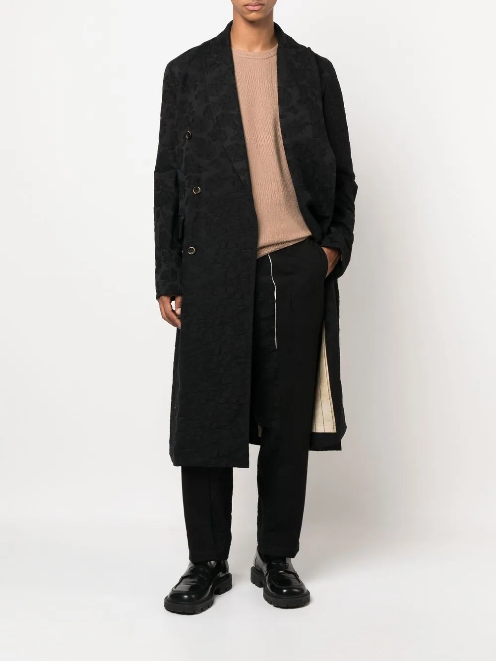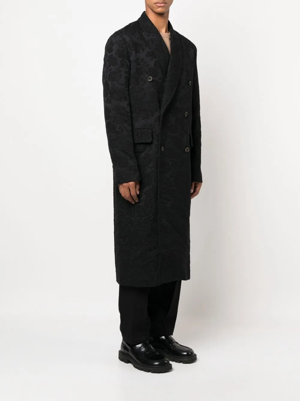 Двубортное пальто с бархатным эффектом Uma Wang, черный 266 055₽