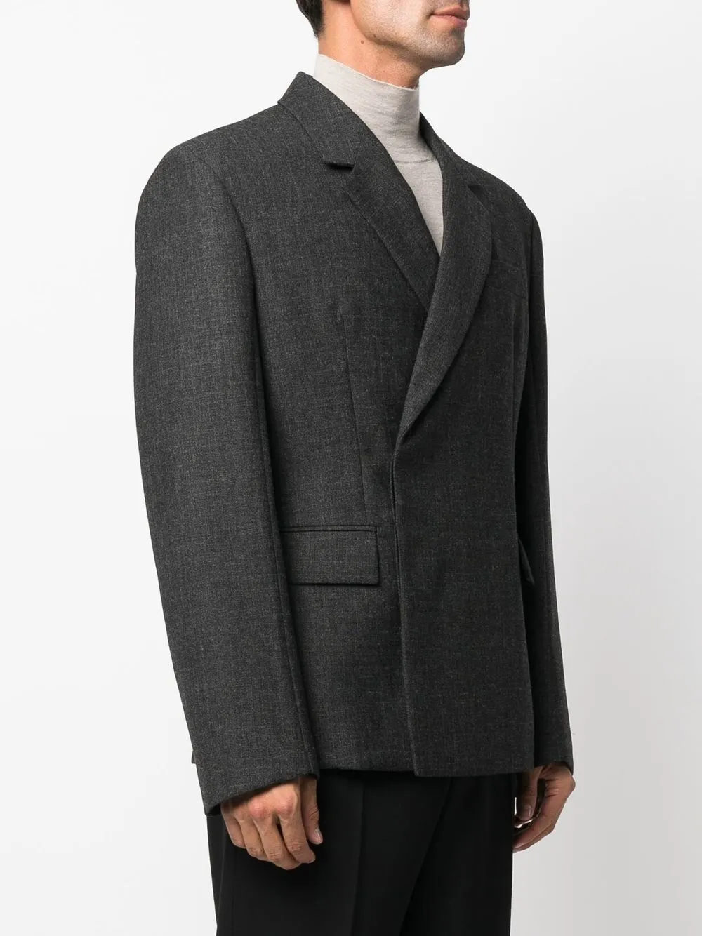 Двубортный пиджак строгого кроя Prada, серый