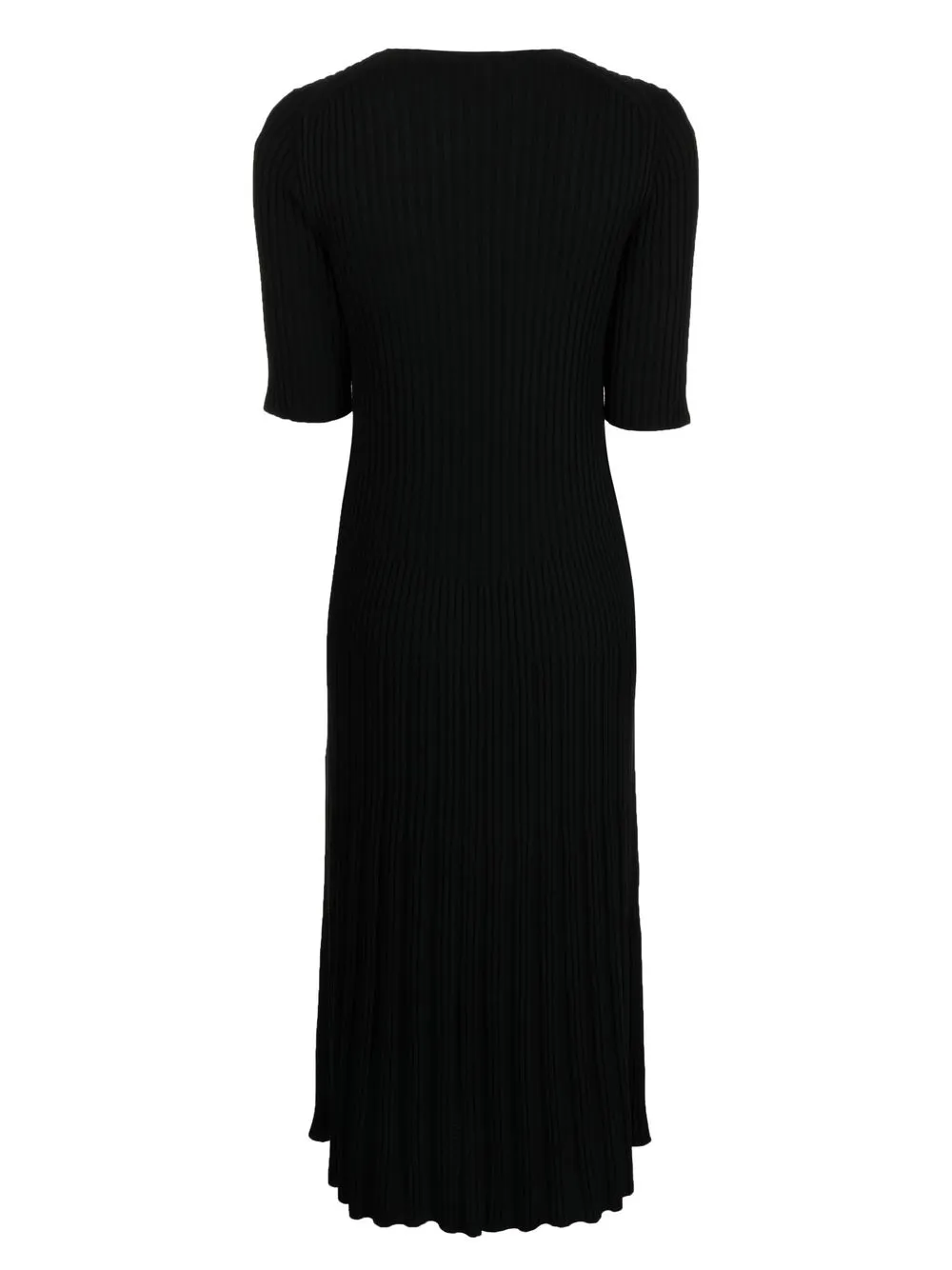 Черный, шерсть мериноса, трикотаж в рубчик, круглый вырез, короткие рукава и длина миди.