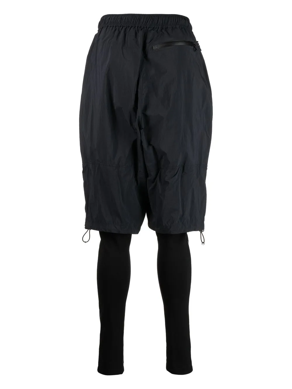 Черный, многослойный дизайн, эластичный пояс, два кармана по бокам и прямой крой.