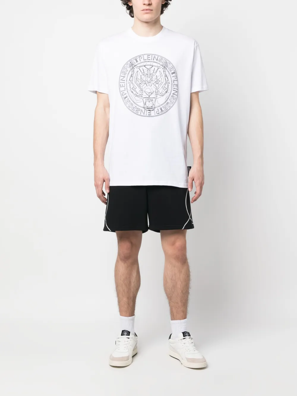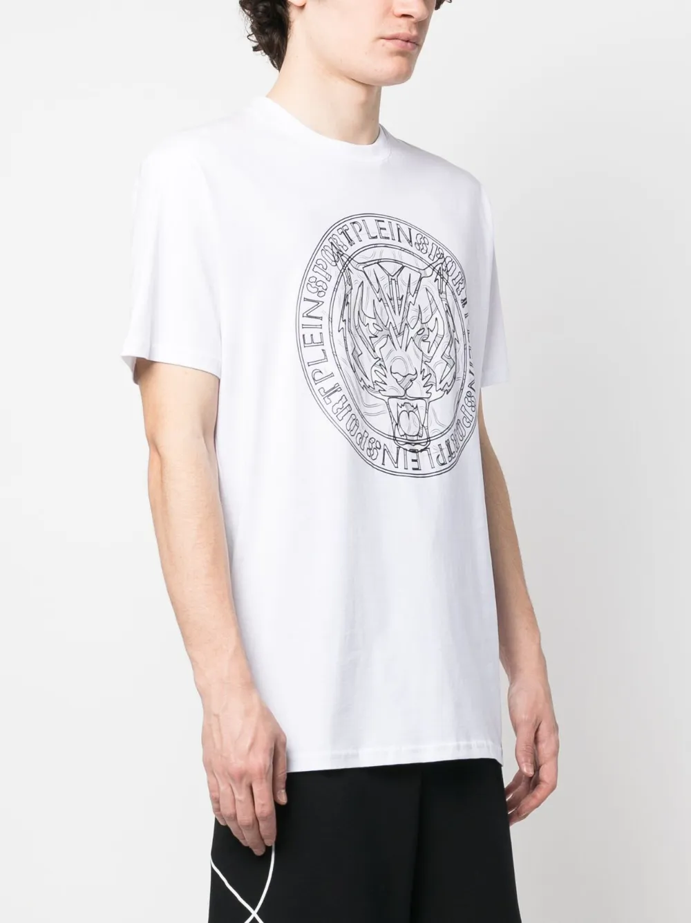 Белый, декор Tiger Head, круглый вырез, короткие рукава и прямой подол.