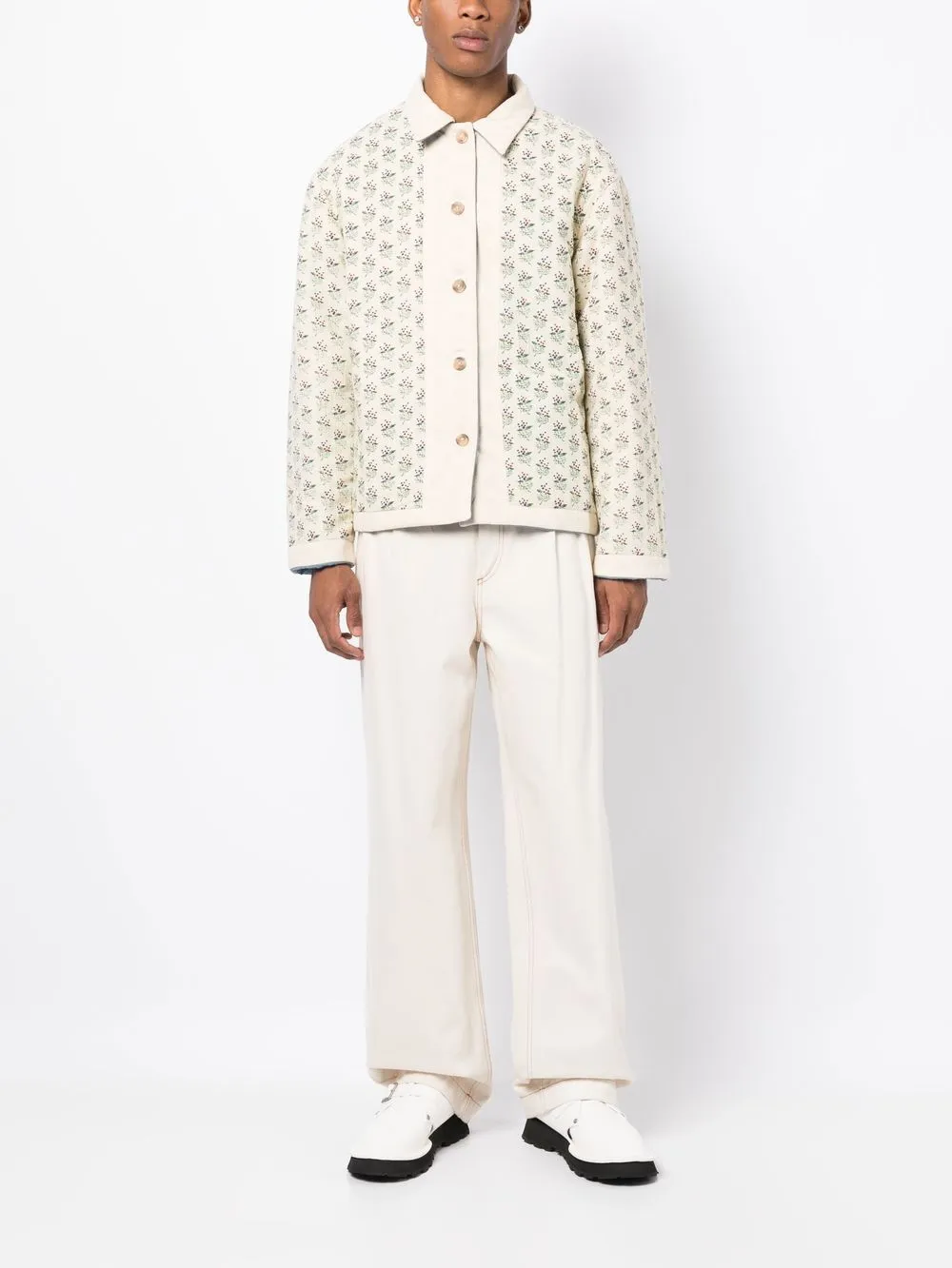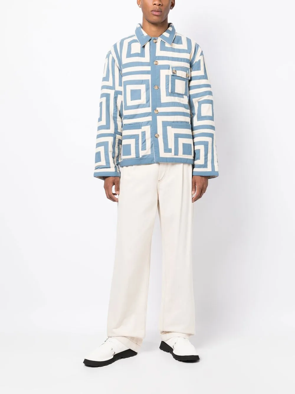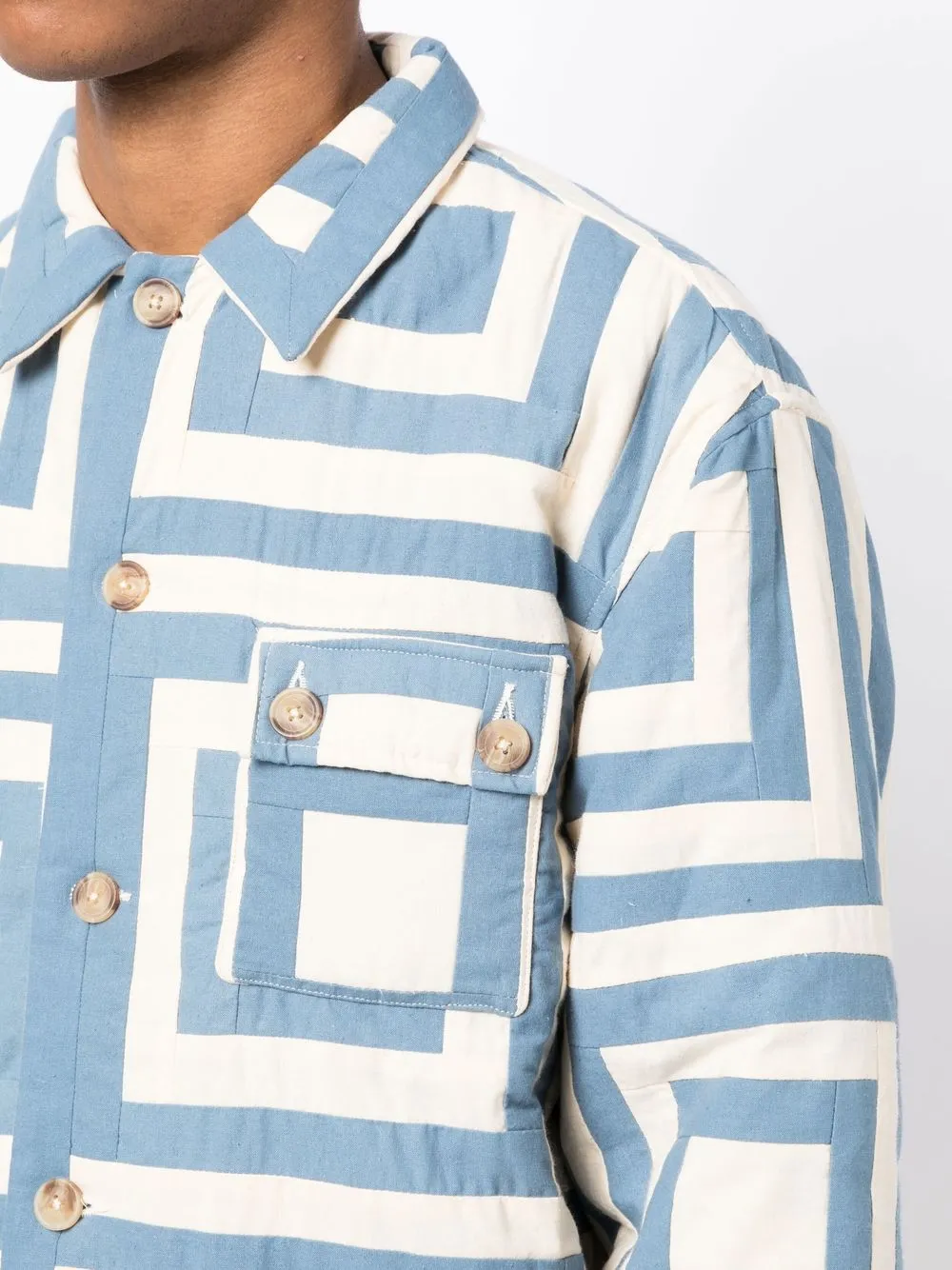 Подробнее о товаре: • кремово-белый/синий • хлопок • сплошной графичный принт • двусторонний дизайн • классический воротник • застежка на пуговицах спереди • длинные рукава • два накладных кармана спереди • стеганая модель • прямой подол • Мы сотрудничаем с Good On You - независимым агентством, которое оценивает бренды по отношению к их влиянию на планету, людей и животных. Чтобы попасть в категорию ответственных, крупным брендам нужно получить как минимум 4 балла из 5 («Хорошо»), а небольшим маркам - как минимум 3 из 5 («Достойное начало»). • Это товар из коллекции бренда, который получил оценку 3 из 5 («Достойное начало») от Good on You. Обратите внимание, что оценка распространяется на бренд в целом и не гарантирует, что этот товар состоит из экологичных материалов. • Узнать больше о том, какие товары получают отметку «Ответственный выбор», можно из материала «Как мы оцениваем экологичность и этичность».