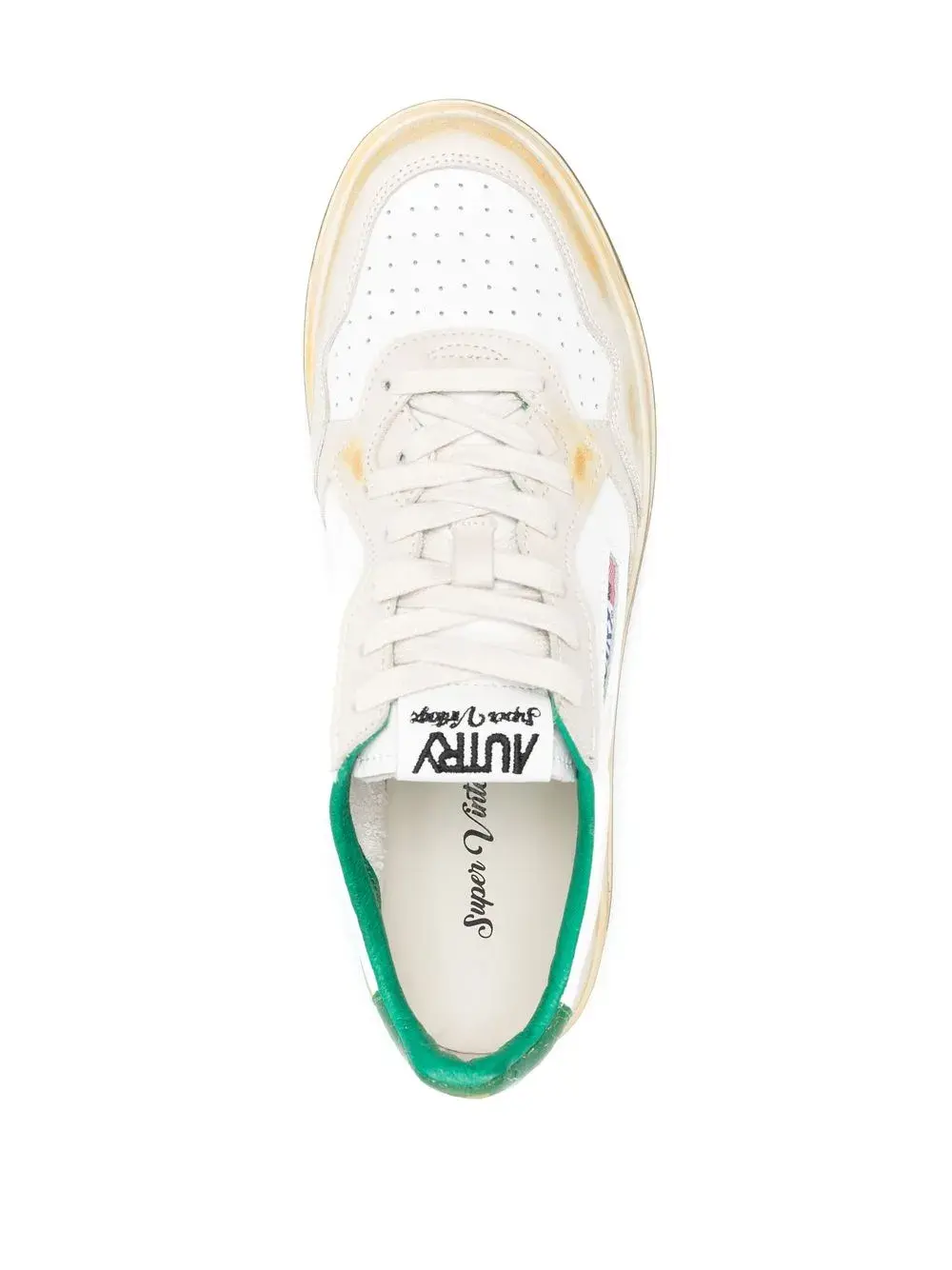 Кремовый, изумрудно-зеленый, телячья кожа, перфорация, эффект потертости, нашивка с логотипом на язычке, логотип сбоку, закругленный носок, шнуровка спереди и плоская резиновая подошва.
